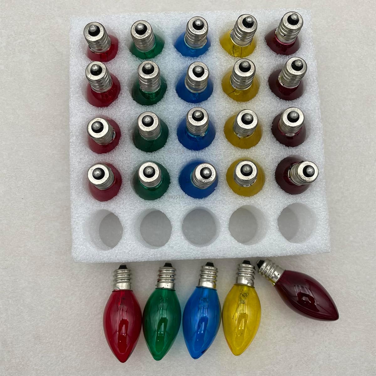 • SAFETY PACKAGE: 25 Pack C7 Christmas clear light bulbs, and each e12 incandescent light bulbs are individually protected with a Pearl foam to provide perfect protection from breakage during shipping or storage.
