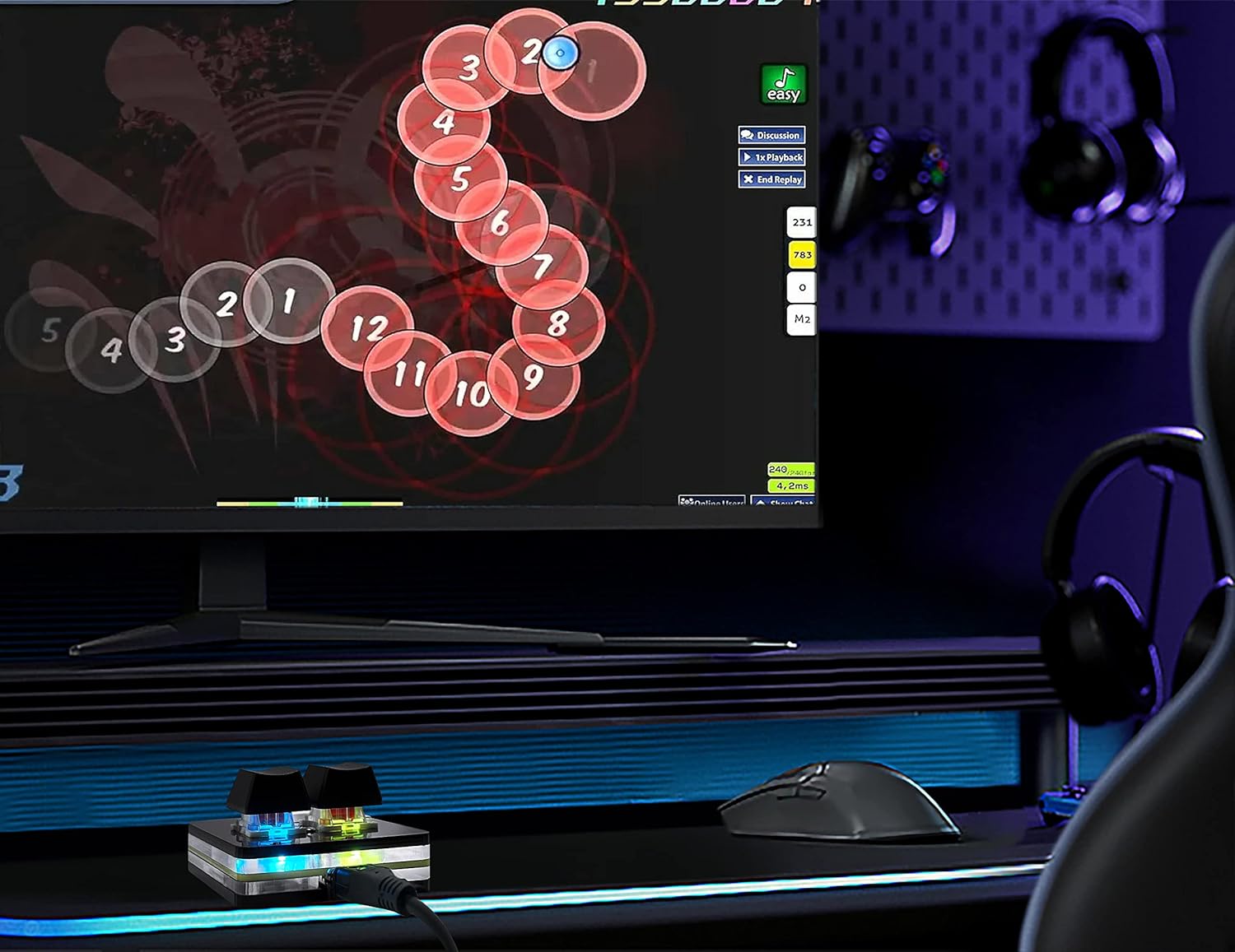 NONO OSU keypad 2-Key Red axis Gaming USB Keyboard,Hotswap Mechanical Keyboard,Mini Mechanica RGB keypad for macros and Rhythm Games.