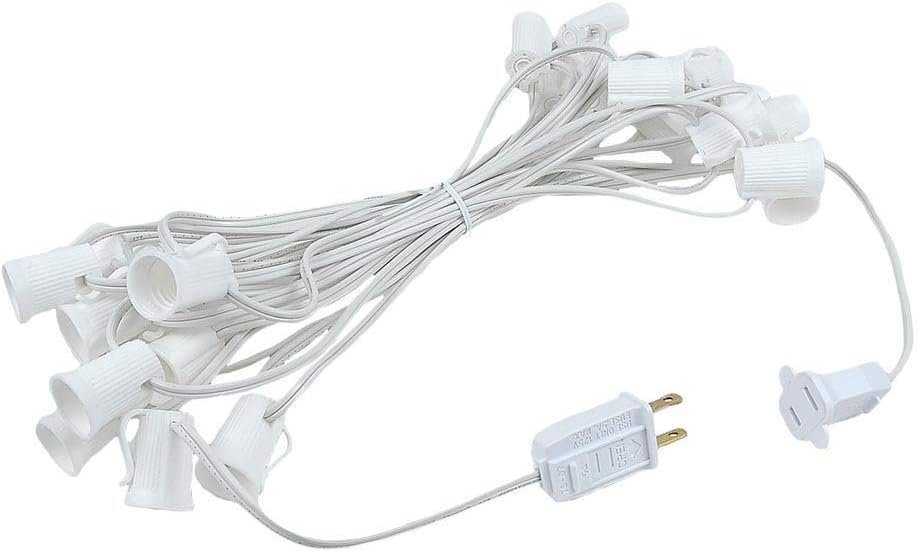Novelty Lights Clear Hanging Incandescent Christmas String Lights - Retro Traditional C9 Indoor/Outdoor Light Set w/ 25 Mini Bulbs For Roof Lines, Patios (White Wire, 25' Long)