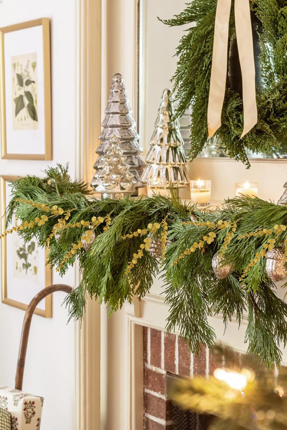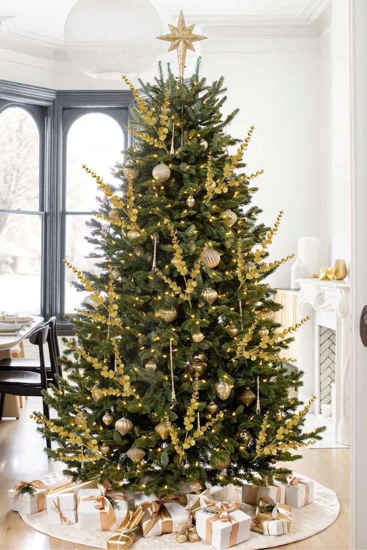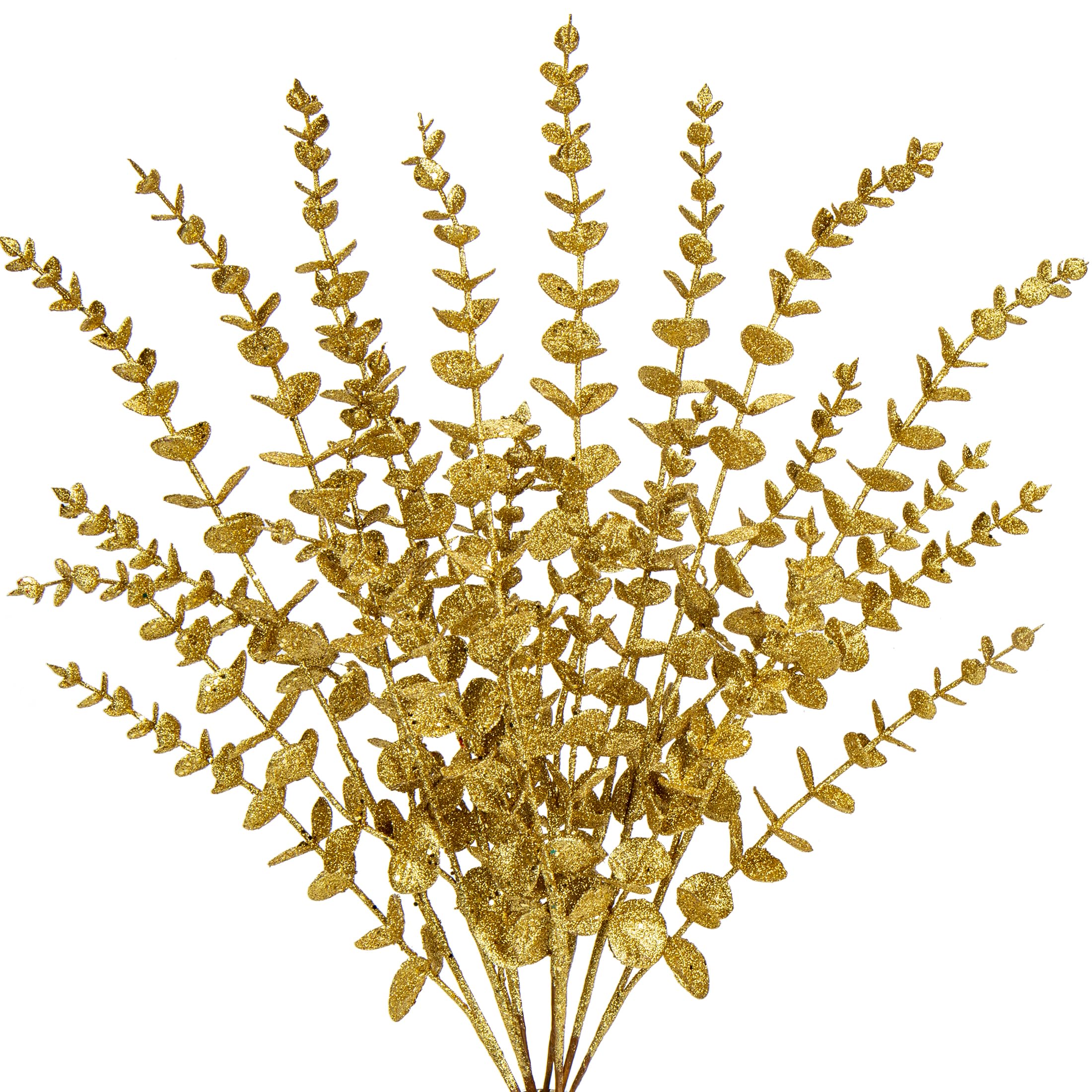 Oairse 8 Pcs Christmas Tree Picks and Sprays Gold Glitter Christmas Picks 25.6" Christmas Glitter Eucalyptus Leaves Stems for Christmas Tree Filler Branches Wreaths Centerpieces Holiday Decorations