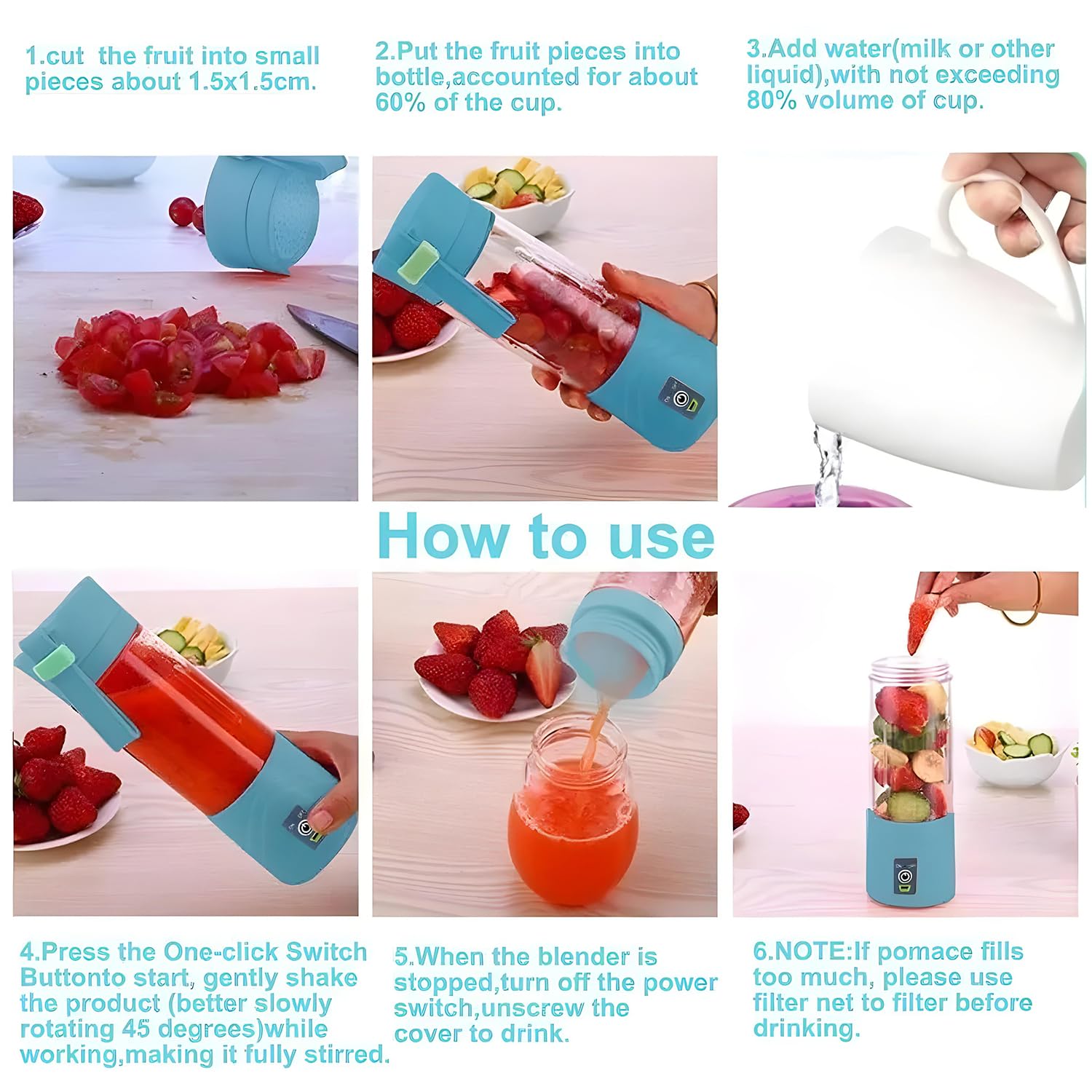 Oblivion Portable 6-Blade Fruit Juicer Blender 1 Pc ? USB Rechargeable Multicolor Mixer Bottle for Juice Protein & Milk Shake Smoothies Fruit & Vegetable Grinder Multi-Purpose Electric Shaker Cup