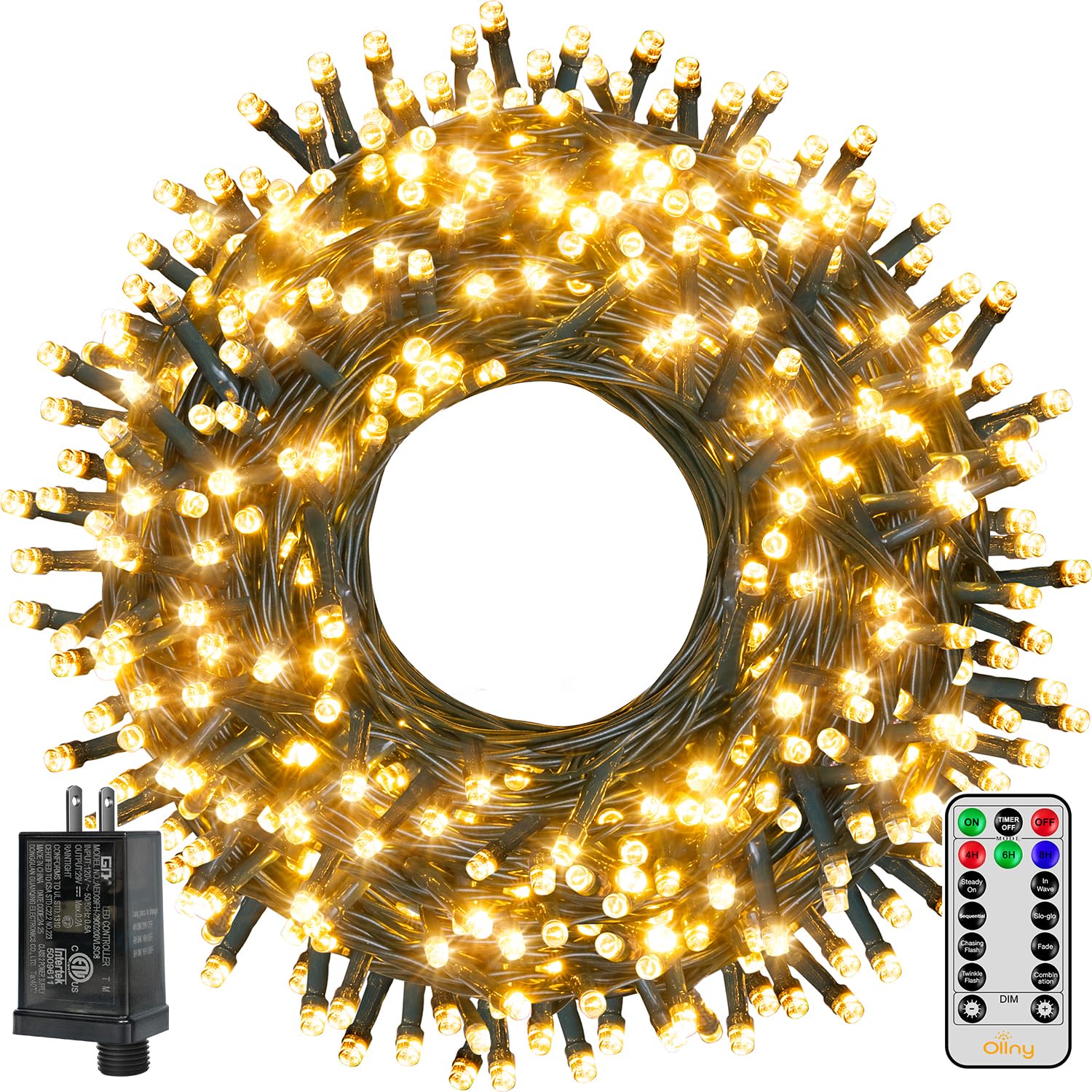 Ollny Christmas Tree Lights 400LED 132FT, Remote Plug-in Christmas Lights with Timer and 8 Modes, Waterproof Outdoor String Lights for Thanksgiving Xmas House Indoor Outside Decorations(Warm White)