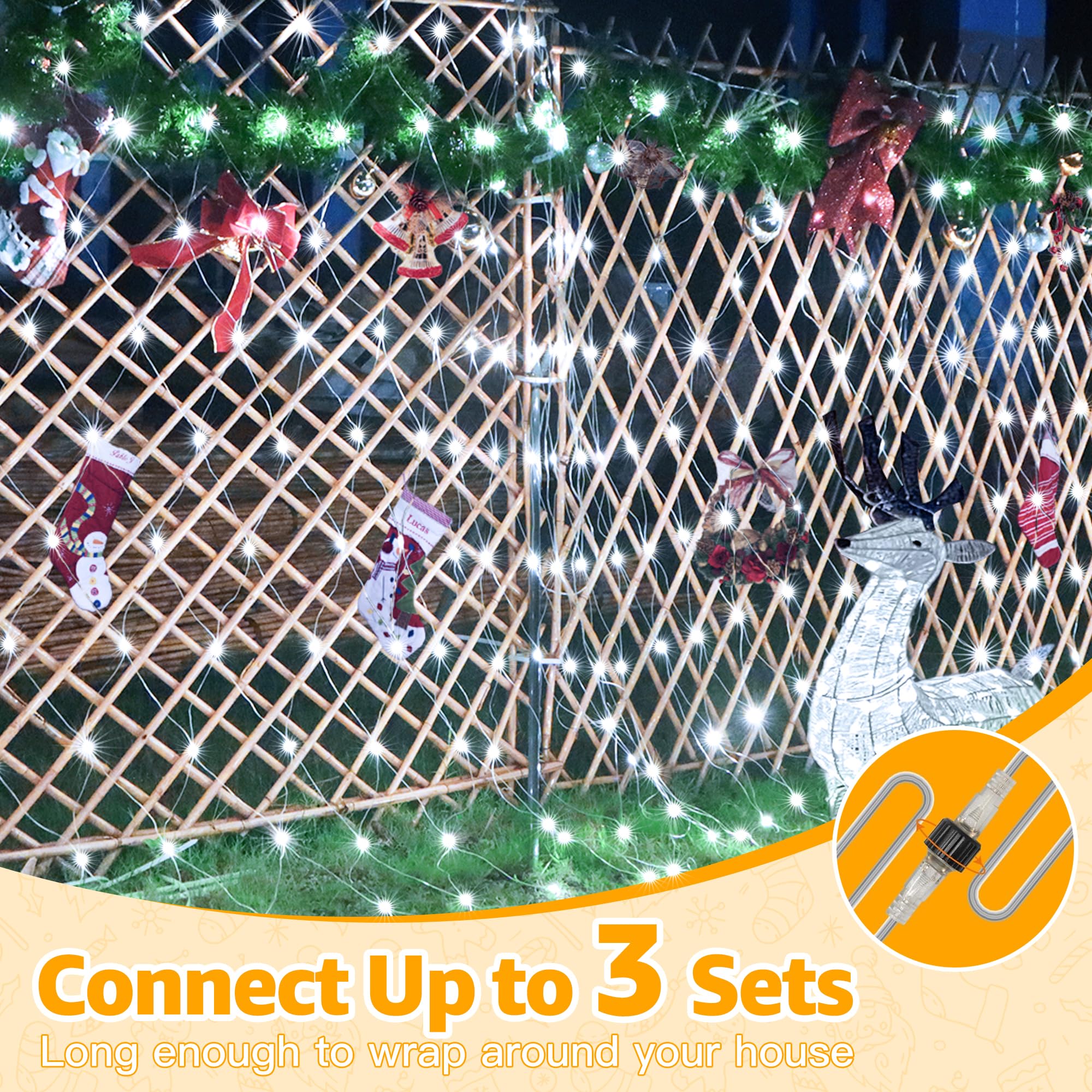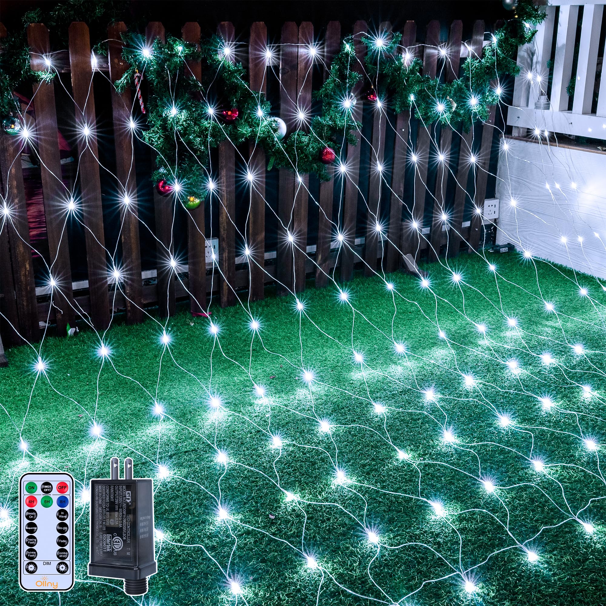 Ollny Net Lights Outdoor Mesh Lights 210LED 10x7ft, IP67 Waterproof Connectable Christmas Net Lights, 8 Modes Plug in Bush Lights for Tree Shrubs Outside Indoor Decorations, Cool White