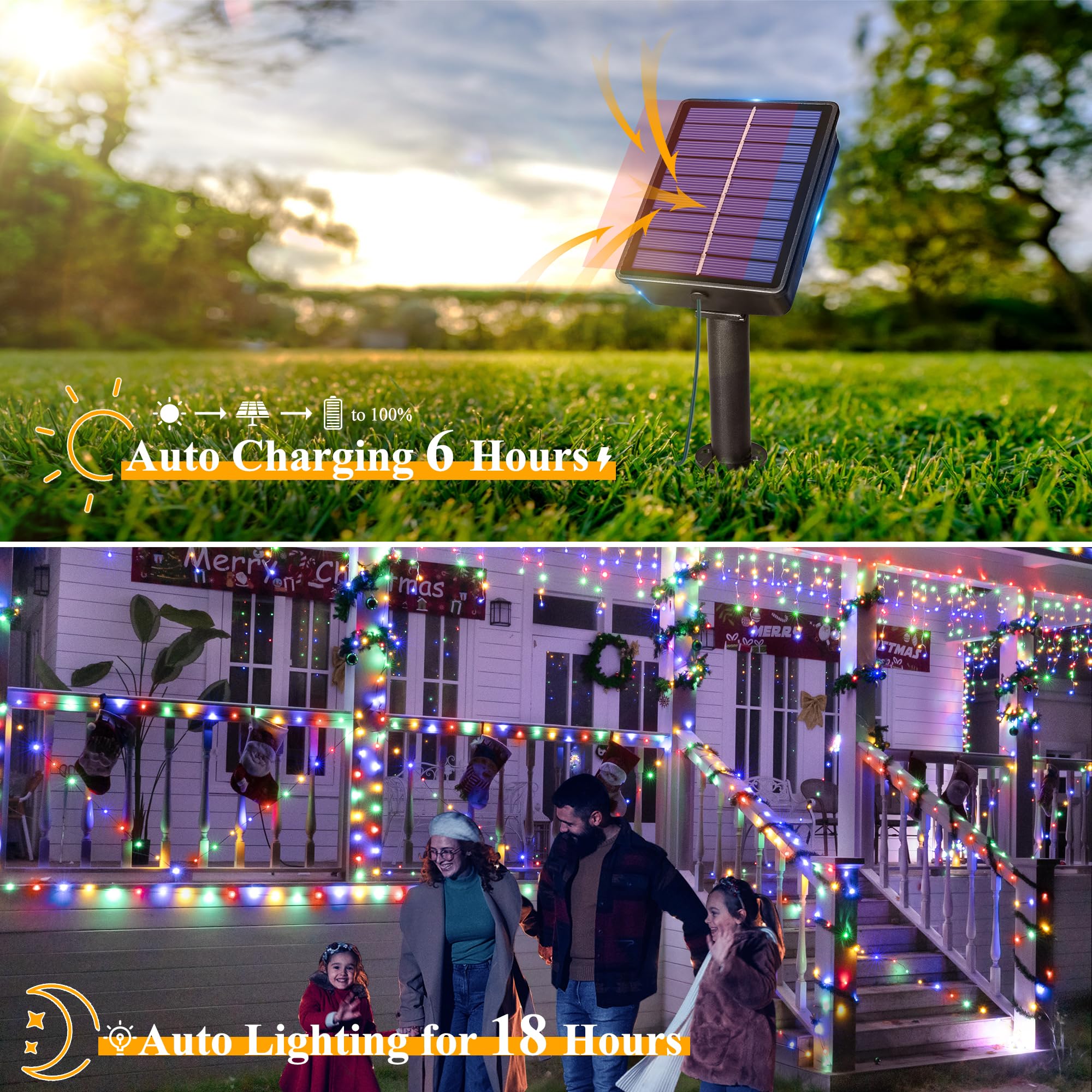 Ollny Solar String Lights for Outside, 2 Pack Total 132FT 400LED Solar Christmas Lights Outdoor, IP67 Waterproof 8 Modes String Lights for Tree Yard Garden Patio Party, Multicolor