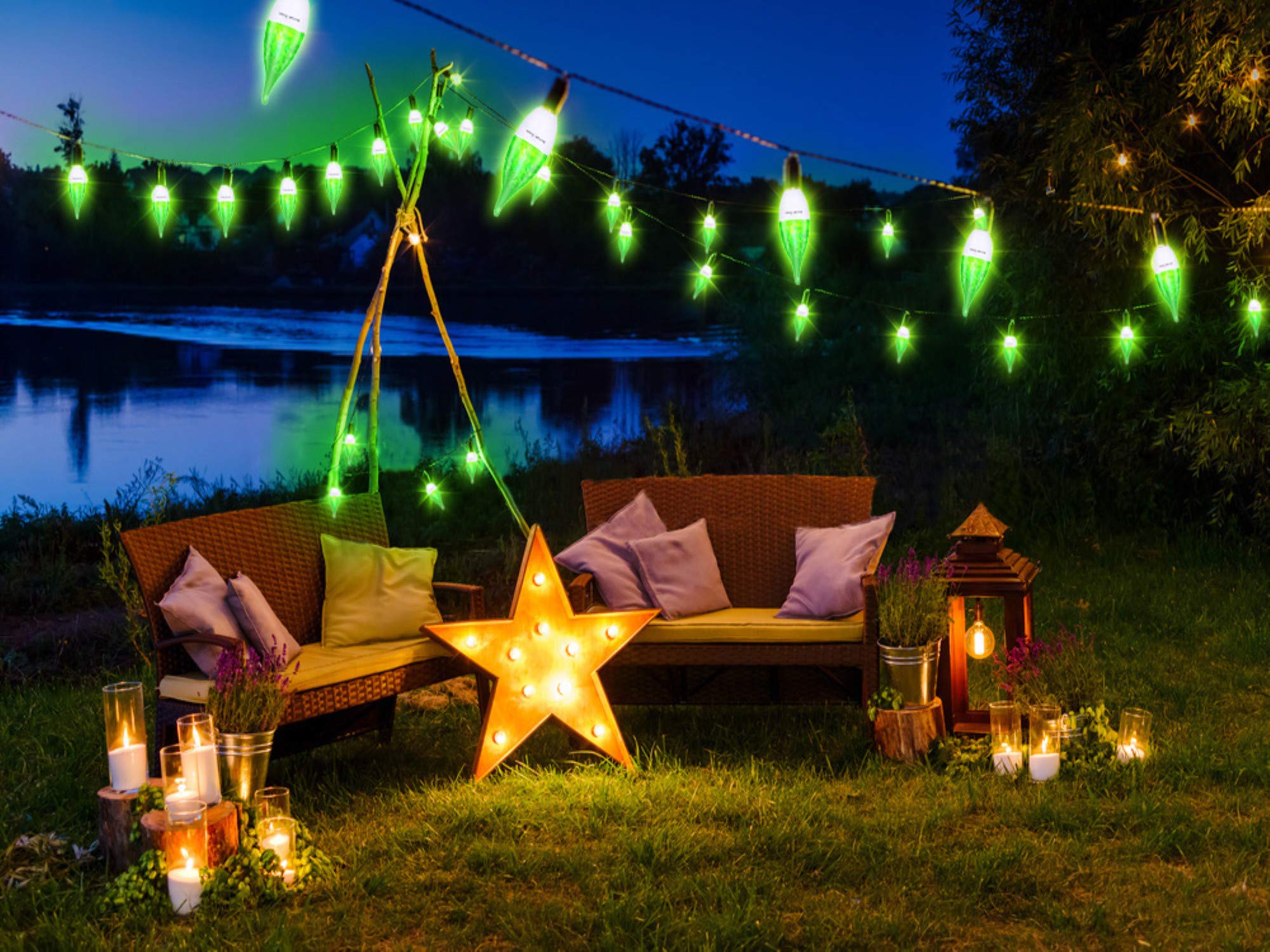 『 OMK Flame LED Bulbs 』 OMK flickering flames beautifully complement the nearby surrounding to create an incredible panorama. 『 E12 Base + 3 Lighting Modes』 OMK Green flame bulb with 1)Flame flickering mode,2)Breathing mode and 3)General Lighting mode,be easily changed by switch on-off .