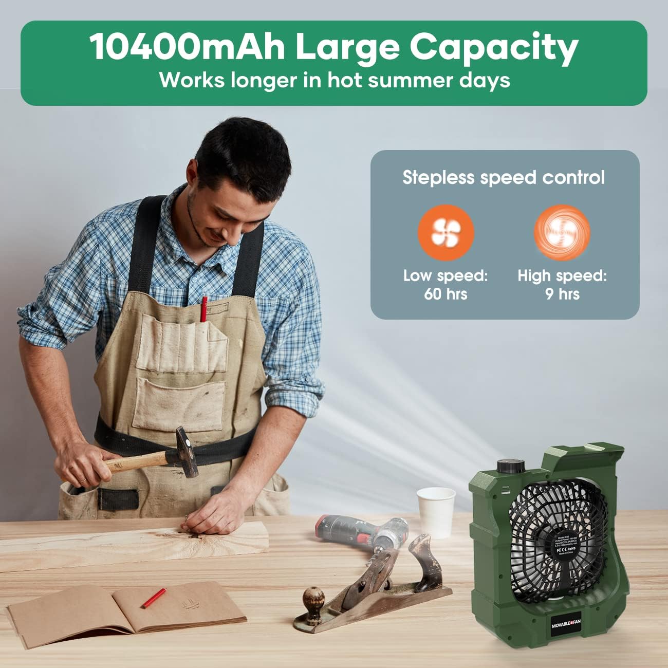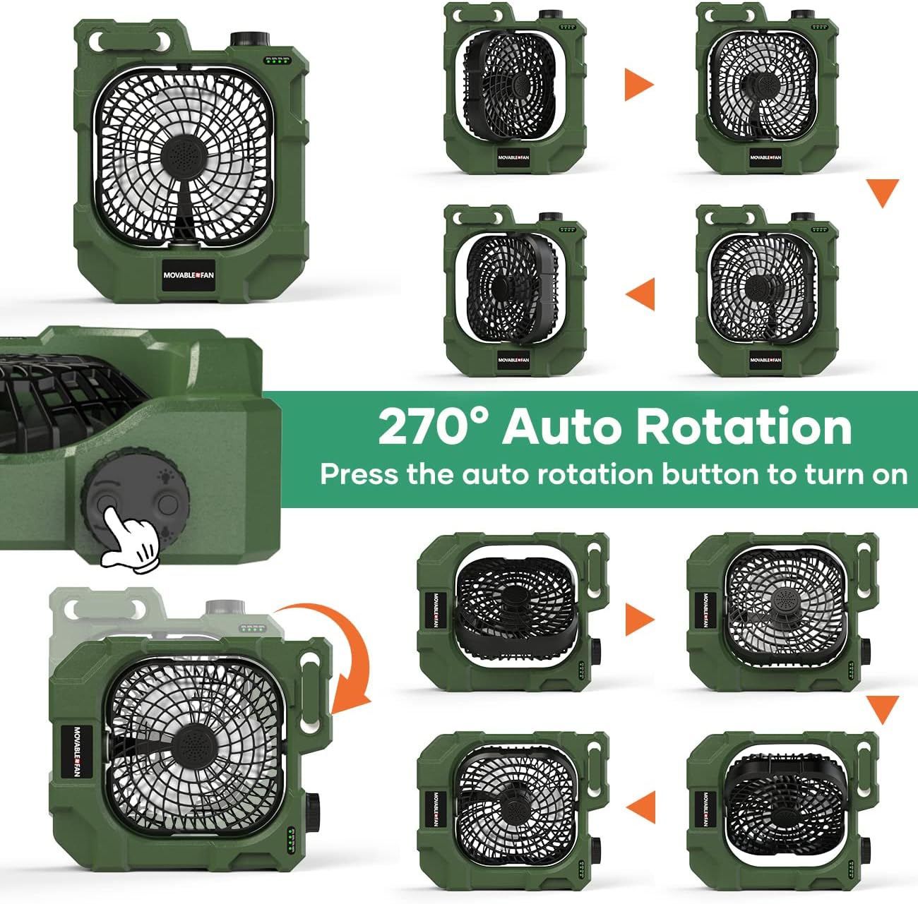 Oscillating Camping Fan, Battery Operated Fan With 10400 Mah Usb Rechargeable Battery, Camping Fan With Led Camping Light