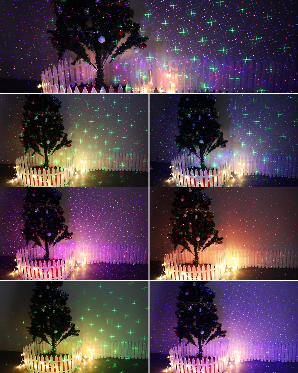 • Christmas laser light: can be used for outdoor and indoor decoration, it can project red, green and blue on walls, gardens and trees to create a warm and festive atmosphere for Christmas, Year, birthday parties, family gatherings and more.
