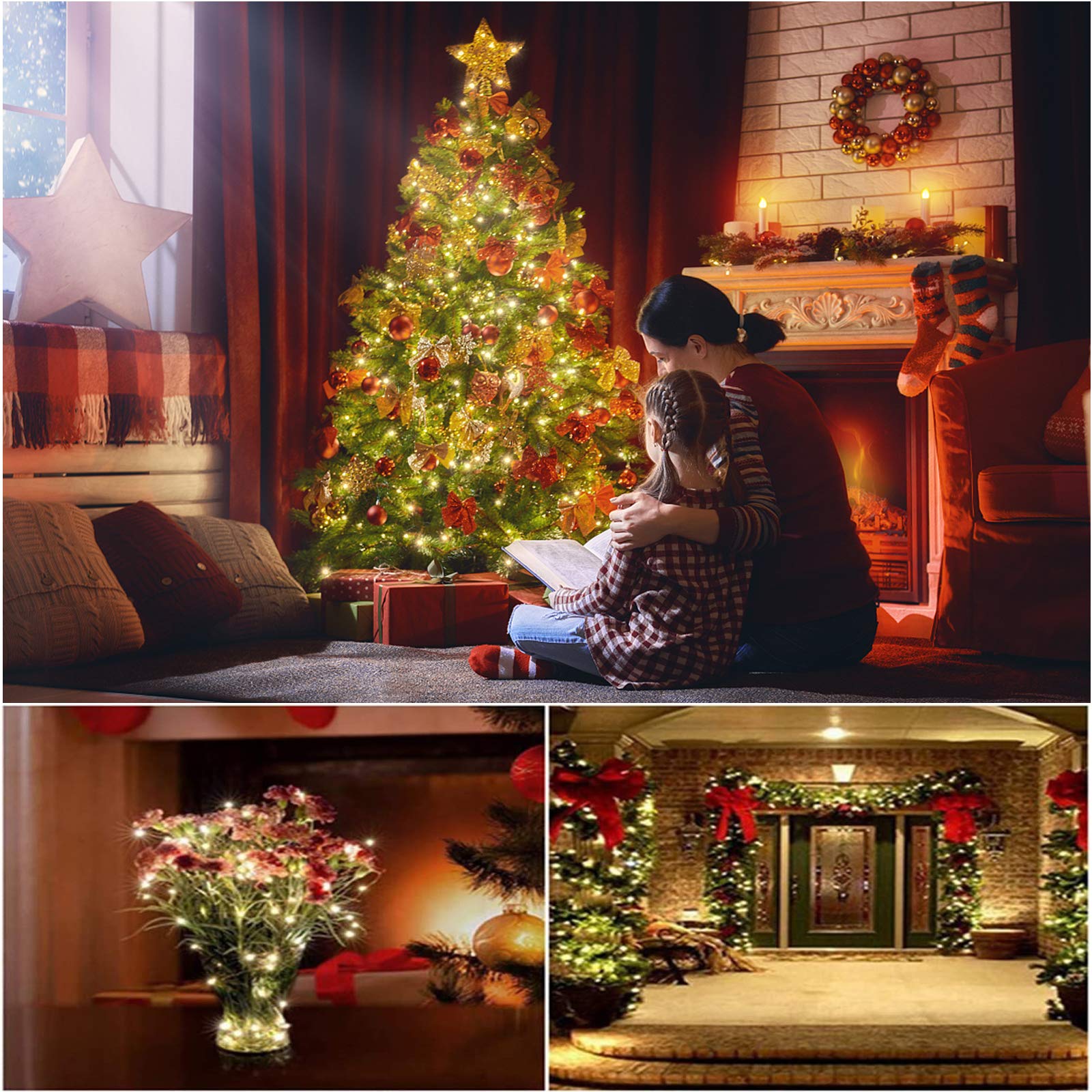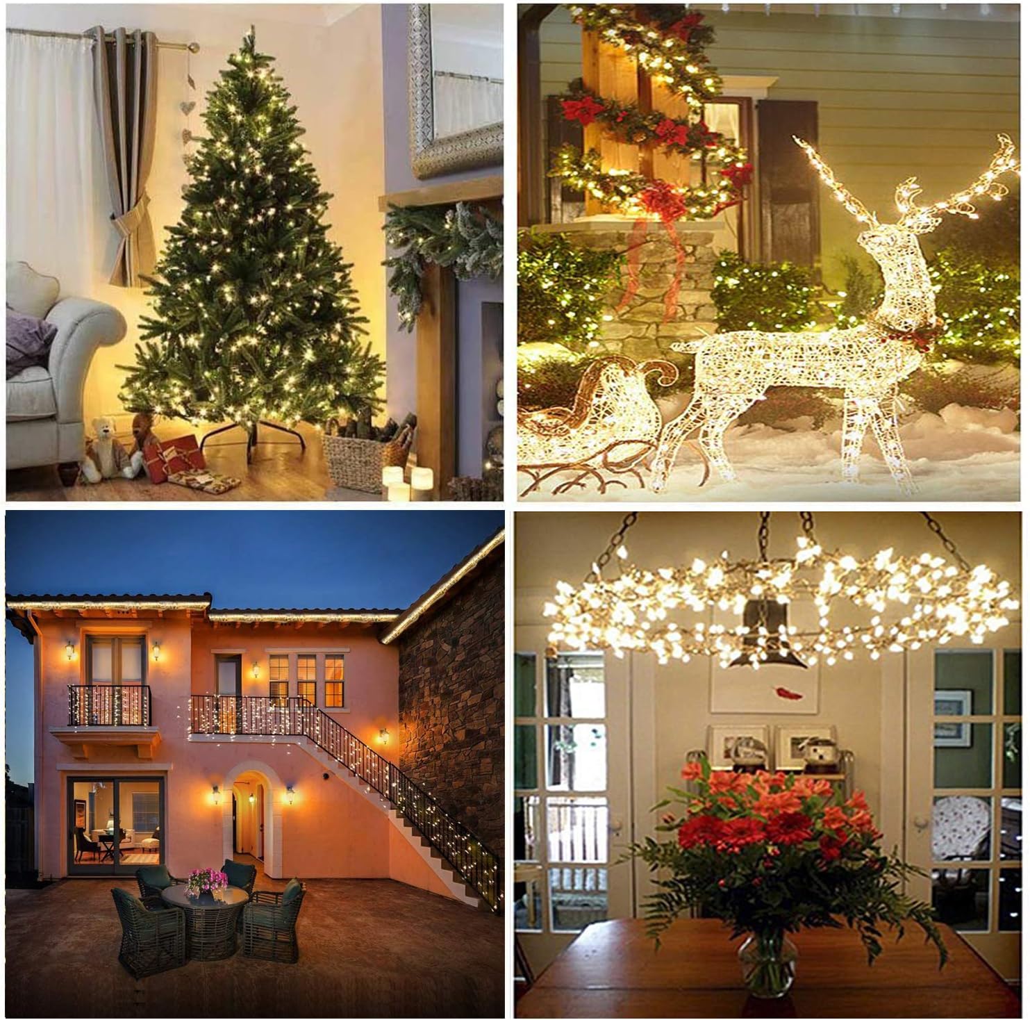 Outdoor Indoor String Lights Christmas 300LED Warm White Fairy Lights 99ft Green Wire Dimmable with Remote Control, Waterproof Fairy Light for DIY Christmas Tree Bedroom Patio Party Decor