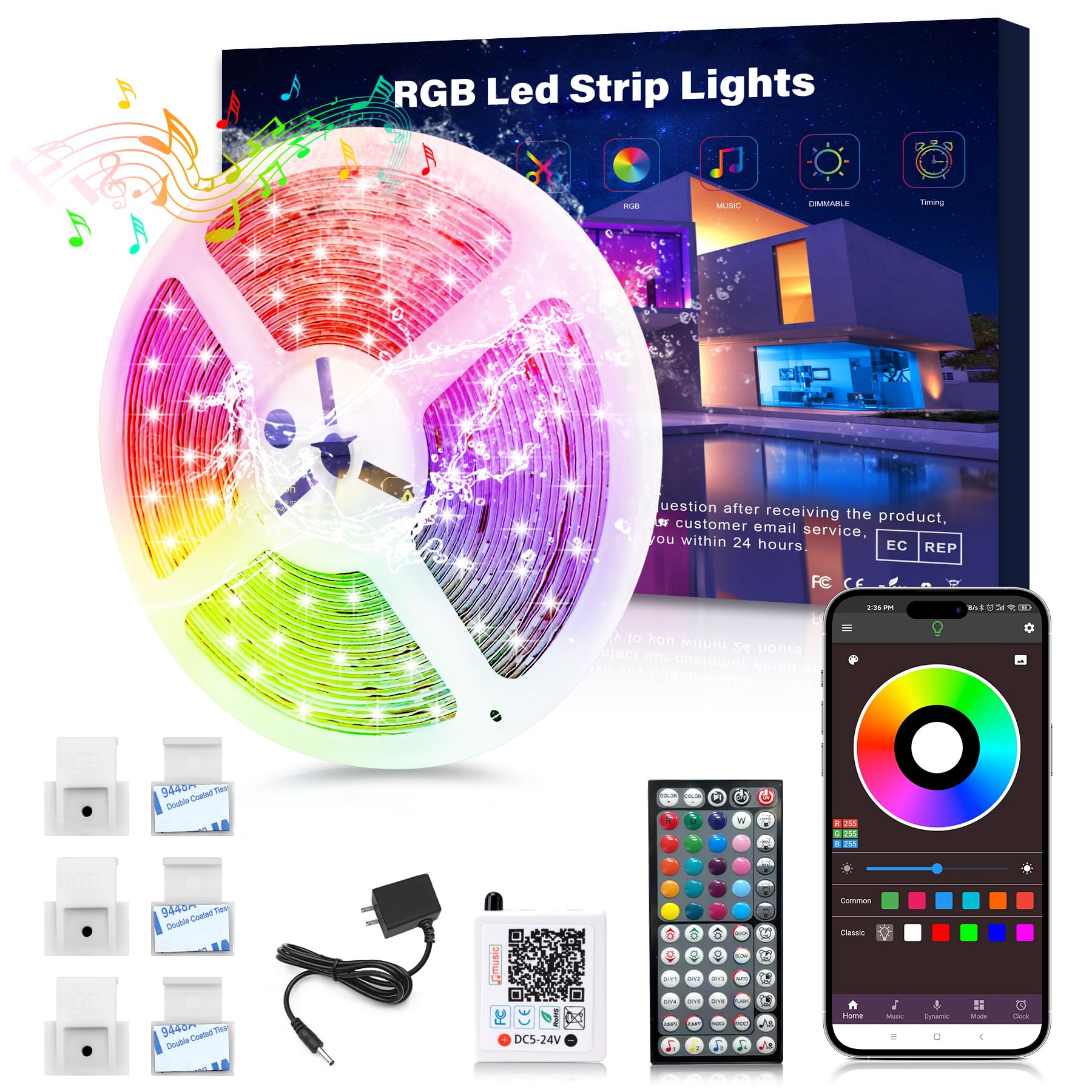 Outdoor Led Strip Lights Waterproof 32.8ft, Color Changing Led Light Strips with Remote, App Control, Music Sync RGB Led Strip Lights Outside IP68 Led Rope Lights for Roof Party Accessories