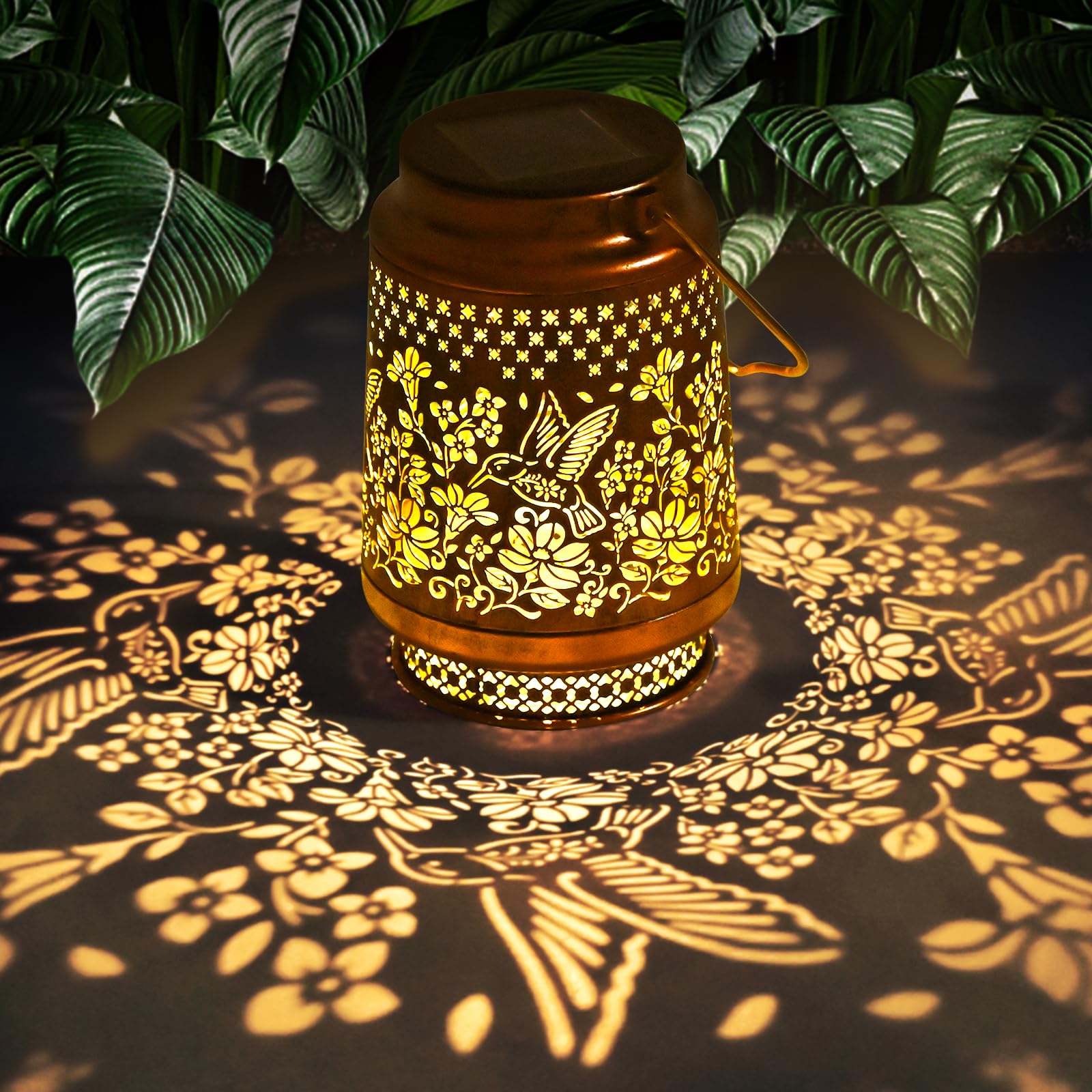 Soft light solar lantern: After turning on the switch, it will automatically charge for 6 hours during the day and light up for 8 hours at night, forming a beautiful hummingbird shadow patterns on the ground. Providing a gentle, warm glow that illuminates your yard, patio, or lawn Outdoor waterproof decoration: IP55 waterproof rating. Weather Resistance. Perfect for outdoor use. The hanging solar light comes with a metal hook, which can be easily hung on a tree, shepherd's hook or other outdoor structure. No electricity or power cords required, easy to install and use