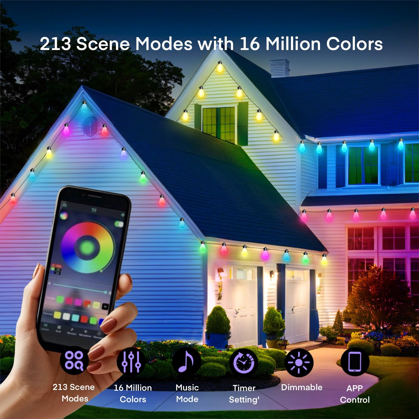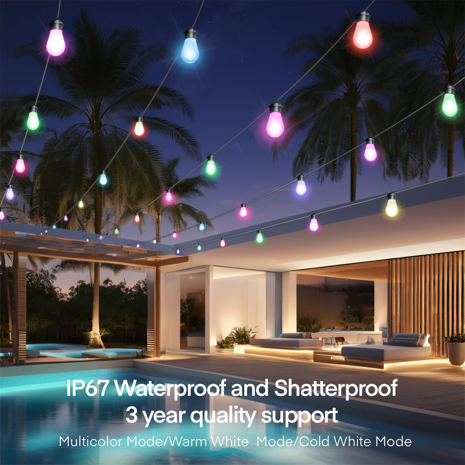 Outdoor String Lights Patio Lights String Lights for Outside Outdoor Lights for Patio Christmas Lights Outdoor Waterproof Shatterproof Dimmable Backyard Lights Outdoor 15 S14 Bulbs (27.5FT +6.5FT)