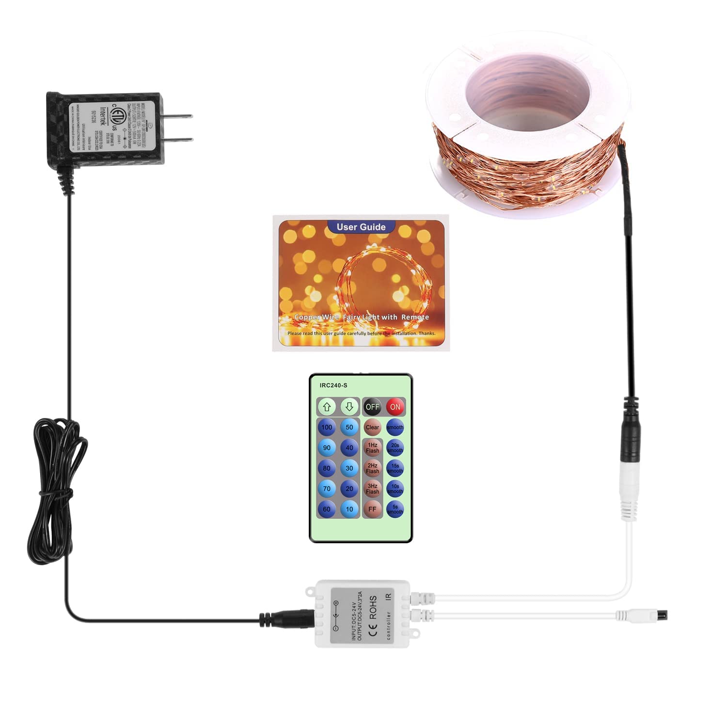 Outlet LED String Lights with Remote Control 99ft with 300 LEDs Dimmable Fairy String Lights for Bedroom,Trees, Indoor/Outdoor Copper String Lights for Birthday, Wedding,Party Warm White
