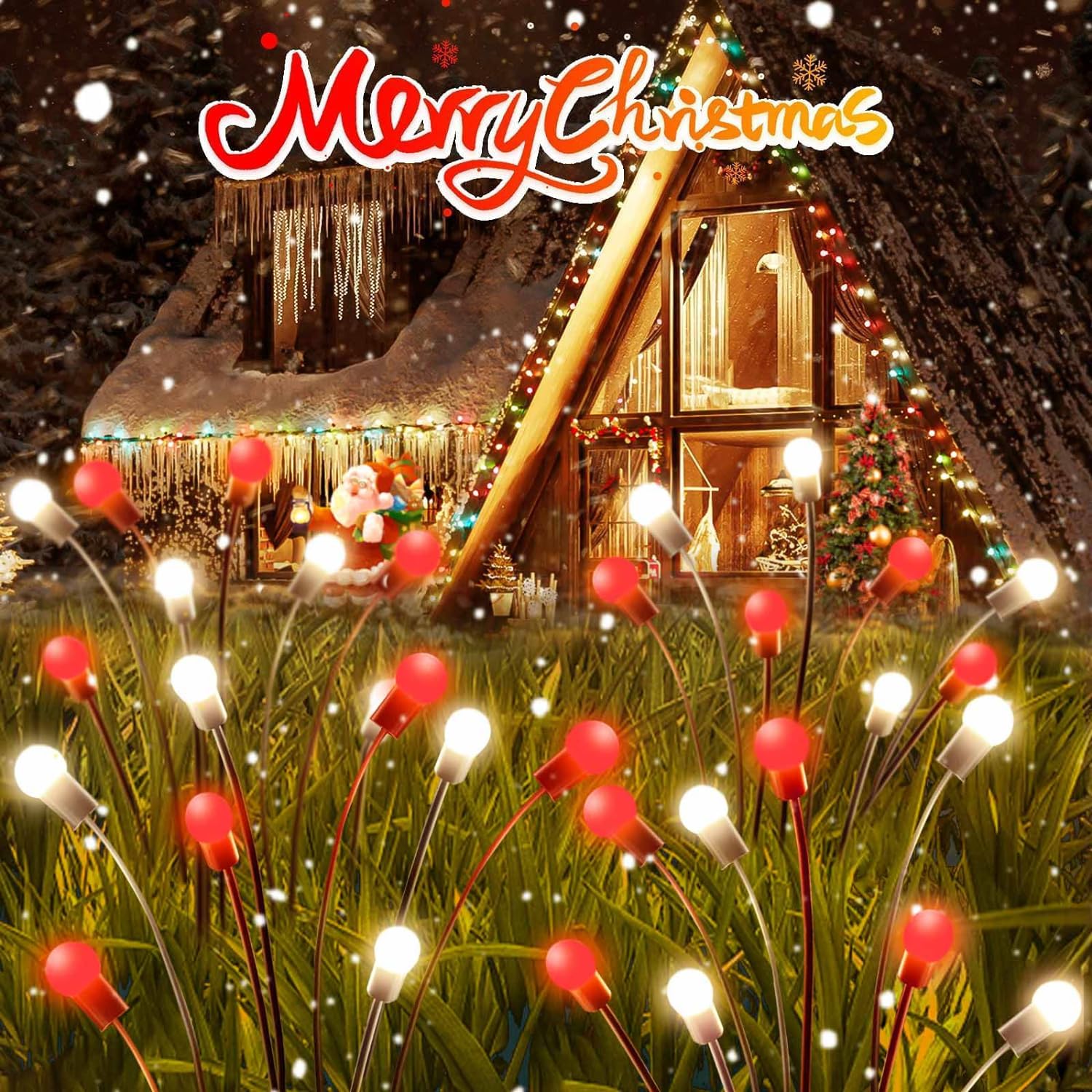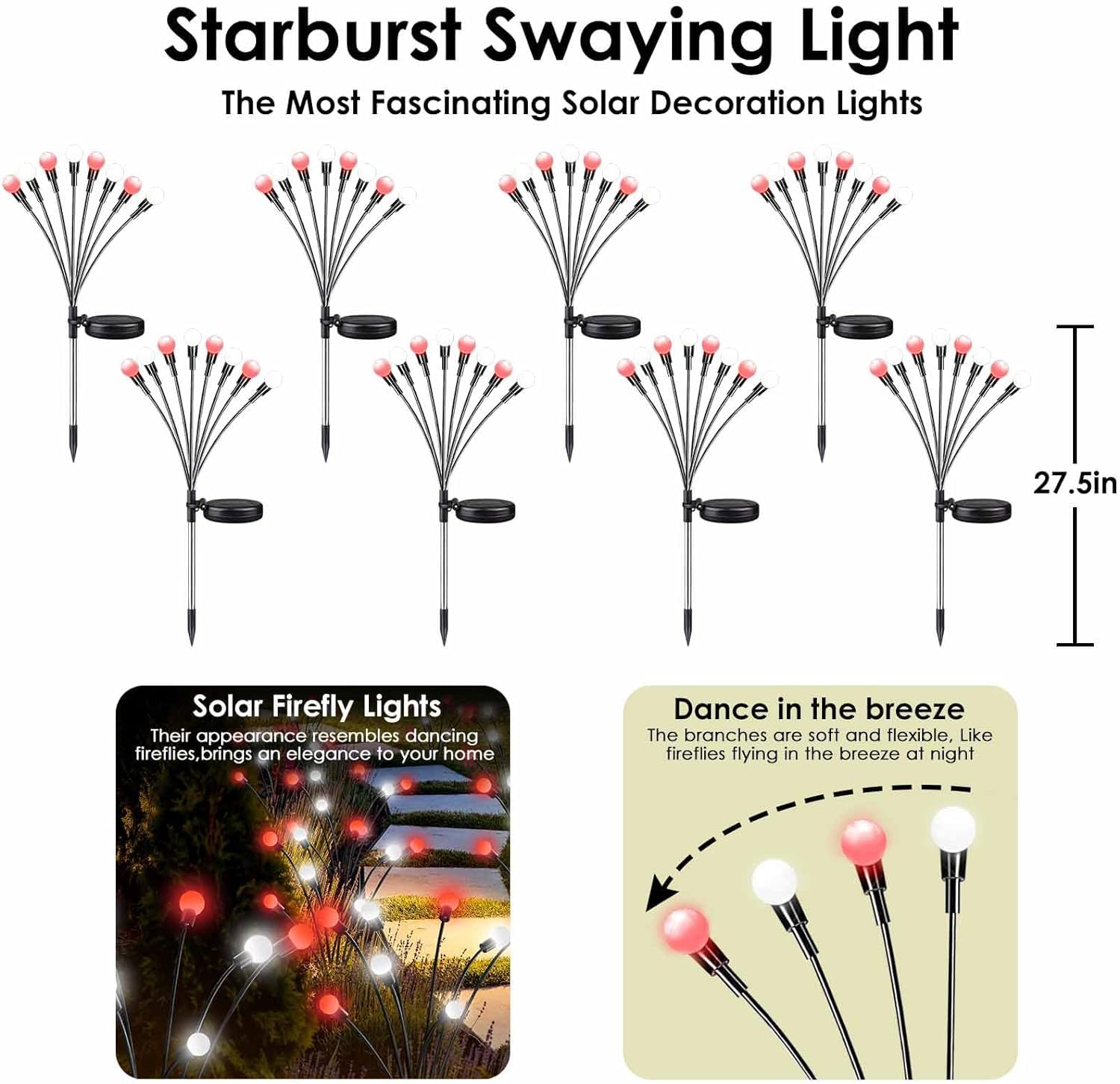 OZS 6Pack Total 48LED Red and White Solar Christmas Lights Outdoor - Solar Garden Lights,Swaying Solar Firefly Lights Outdoor Waterproof,Solar Lights for Pathway Patio Yard Christmas Decorations