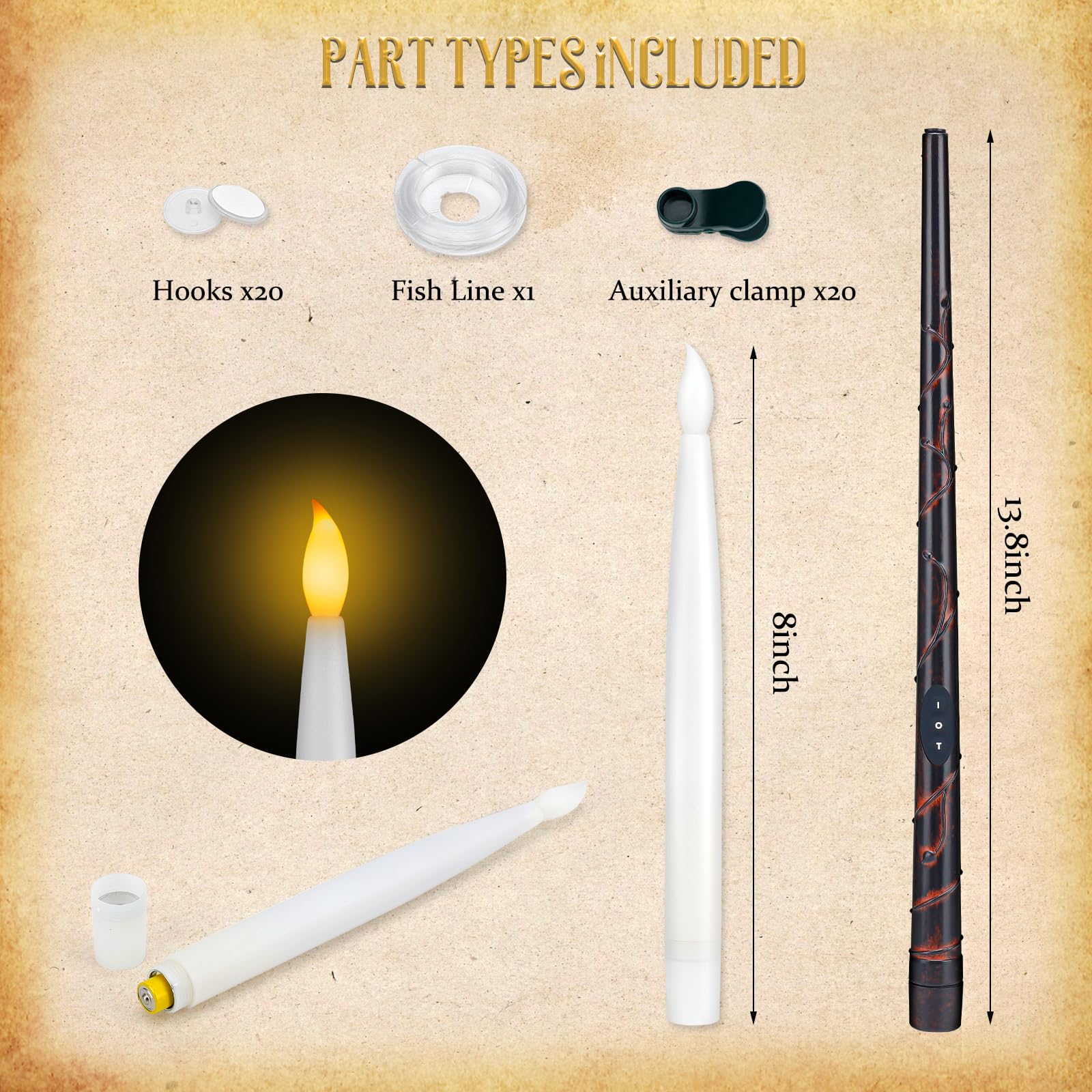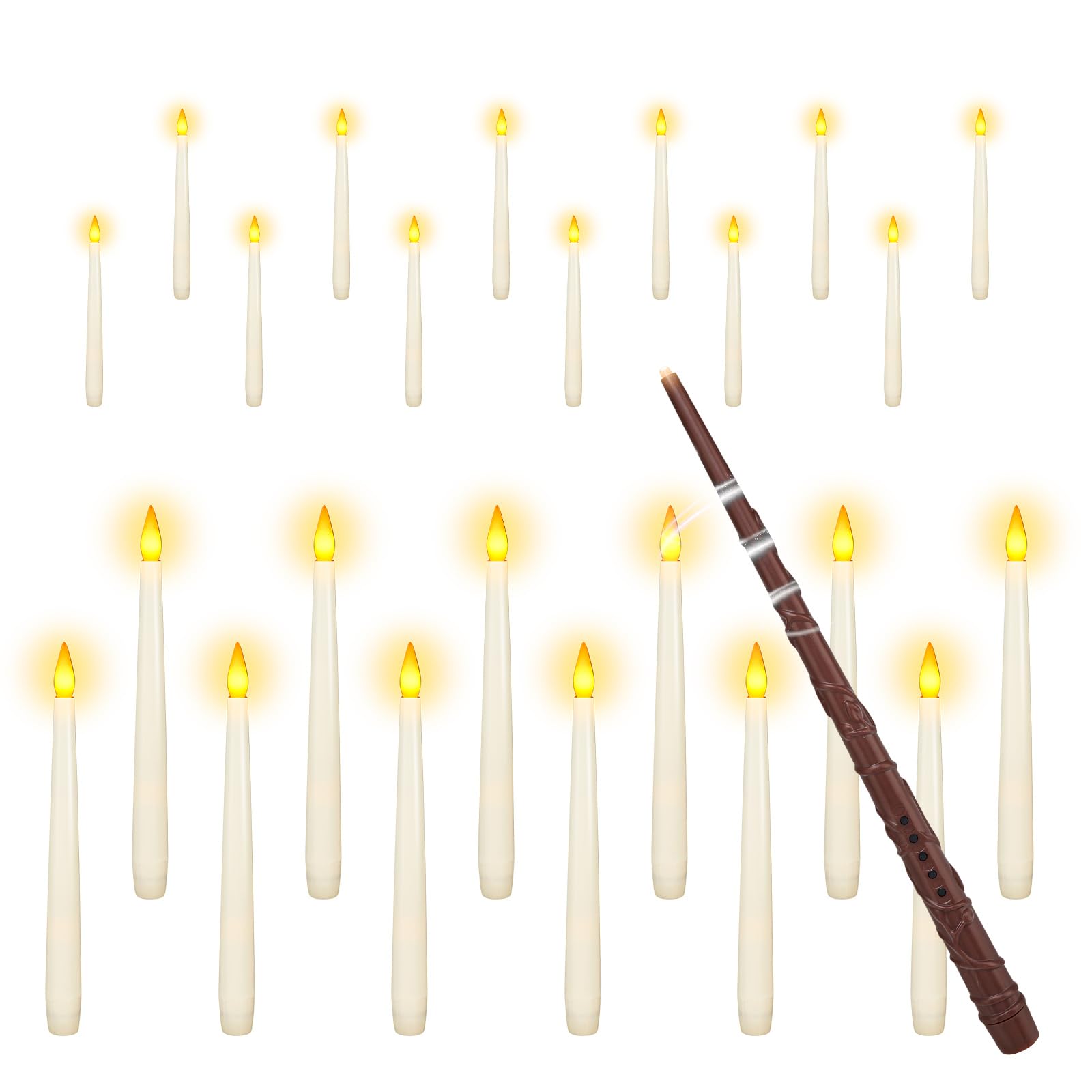 Pensar 20 Pieces Hanging Floating Candles with Remote Control Wands and Auxiliary Clips - Battery Powered Flameless Taper Candles, Flickering LED Candles for Christmas, Halloween, and Home Decorations