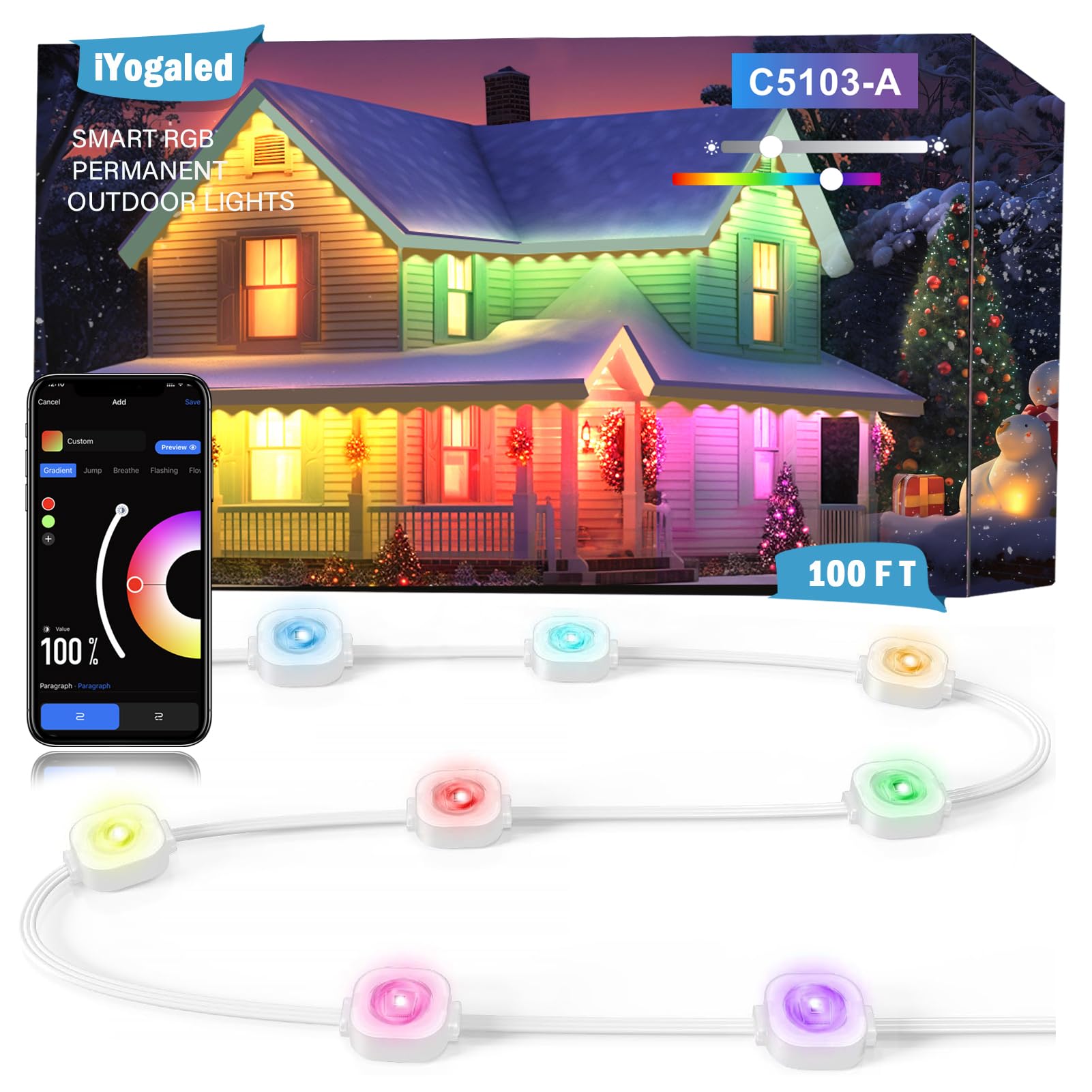 Permanent Outdoor Christmas Lights 100ft,Smart RGB Outdoor Lights Color Changing Eave Lights with 63 Scene Modes, IP67 Waterproof Permanent Holiday Lights Outdoor,APP,Voice,Remote Control