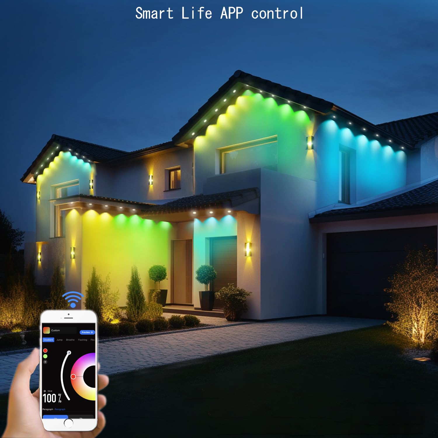 Permanent Outdoor Christmas Lights for House Roof, Year Round 100ft RGB+IC Outdoor Lights with 63 Scene,IP67 72 LED Eaves Lights for Holiday, Christmas, Daily Lighting, Smart Life APP Control