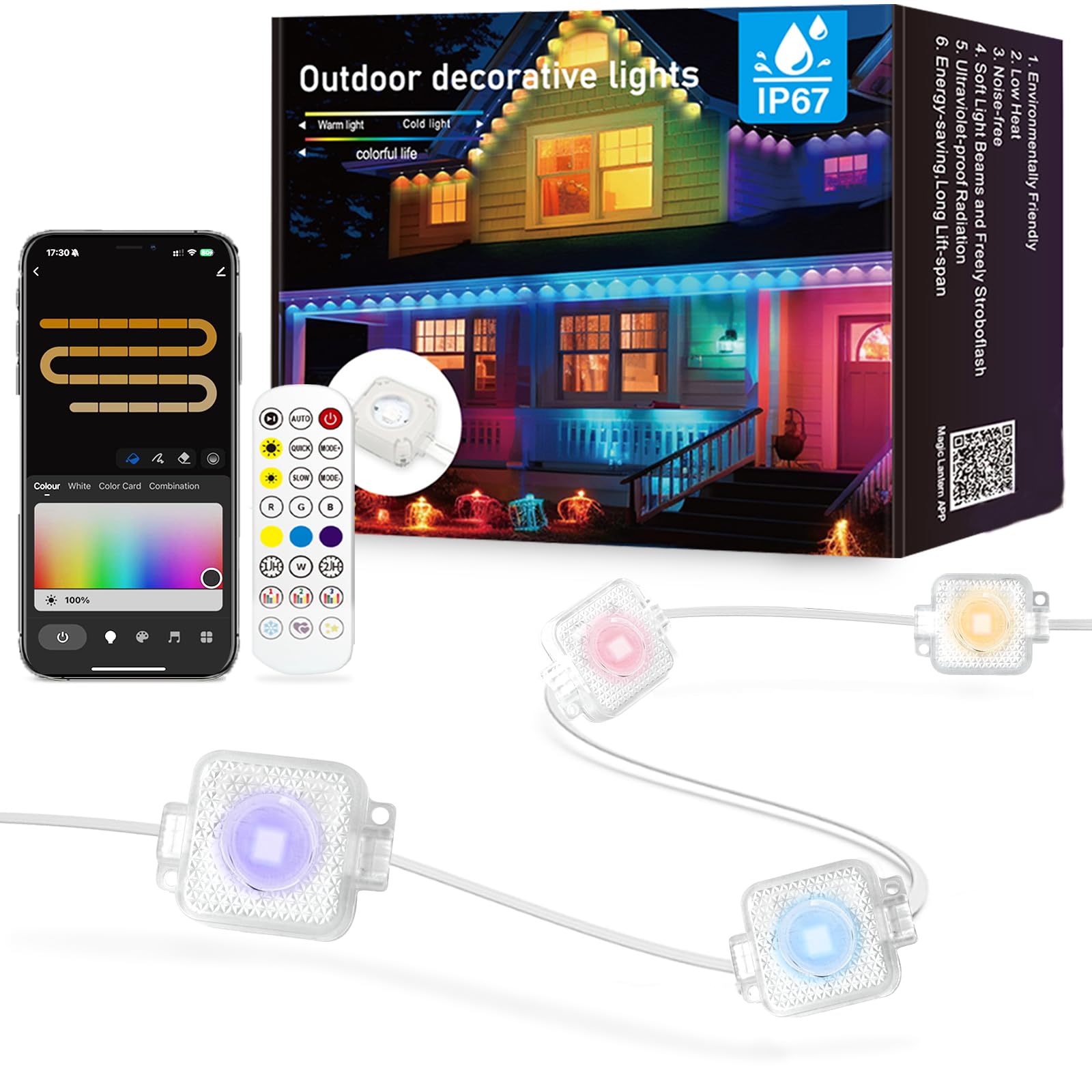 Permanent Outdoor Lights, 100FT LED Eaves Lights with 72 Smart RGB Outdoor Lights, with 75 DIY Scene Modes IP67 Waterproof, For Halloween Decorations, Christmas, Work with Alexa, Google Assistant