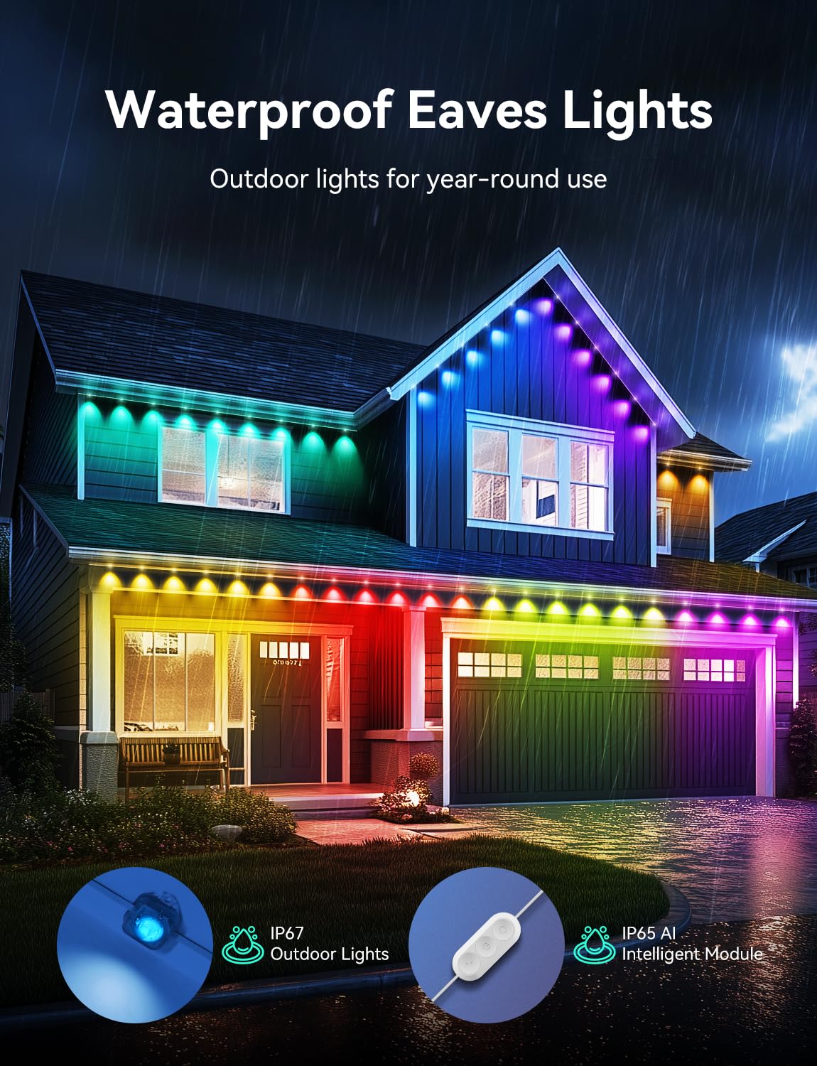 Permanent Outdoor Lights, 100ft RGB Outdoor Christmas Lights with 72 LED Lights, IP67 Waterproof LED Eaves Lights with DIY Scene Modes for Halloween Decor, Smart APP & Remote Control