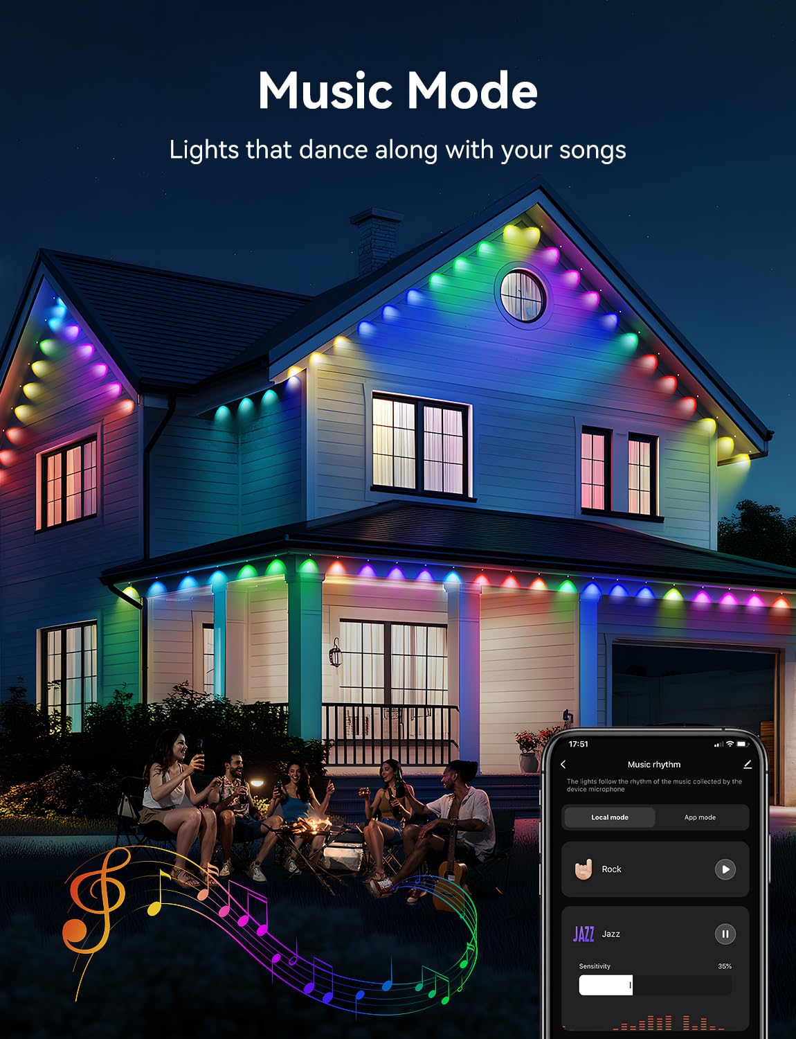 Permanent Outdoor Lights, 100ft with 72 LED Eaves Lights IP67 Waterproof, Smart Outdoor Lights with DIY Scene Modes for Party, Holiday, and Game Day, Work with Alexa, Google Assistant