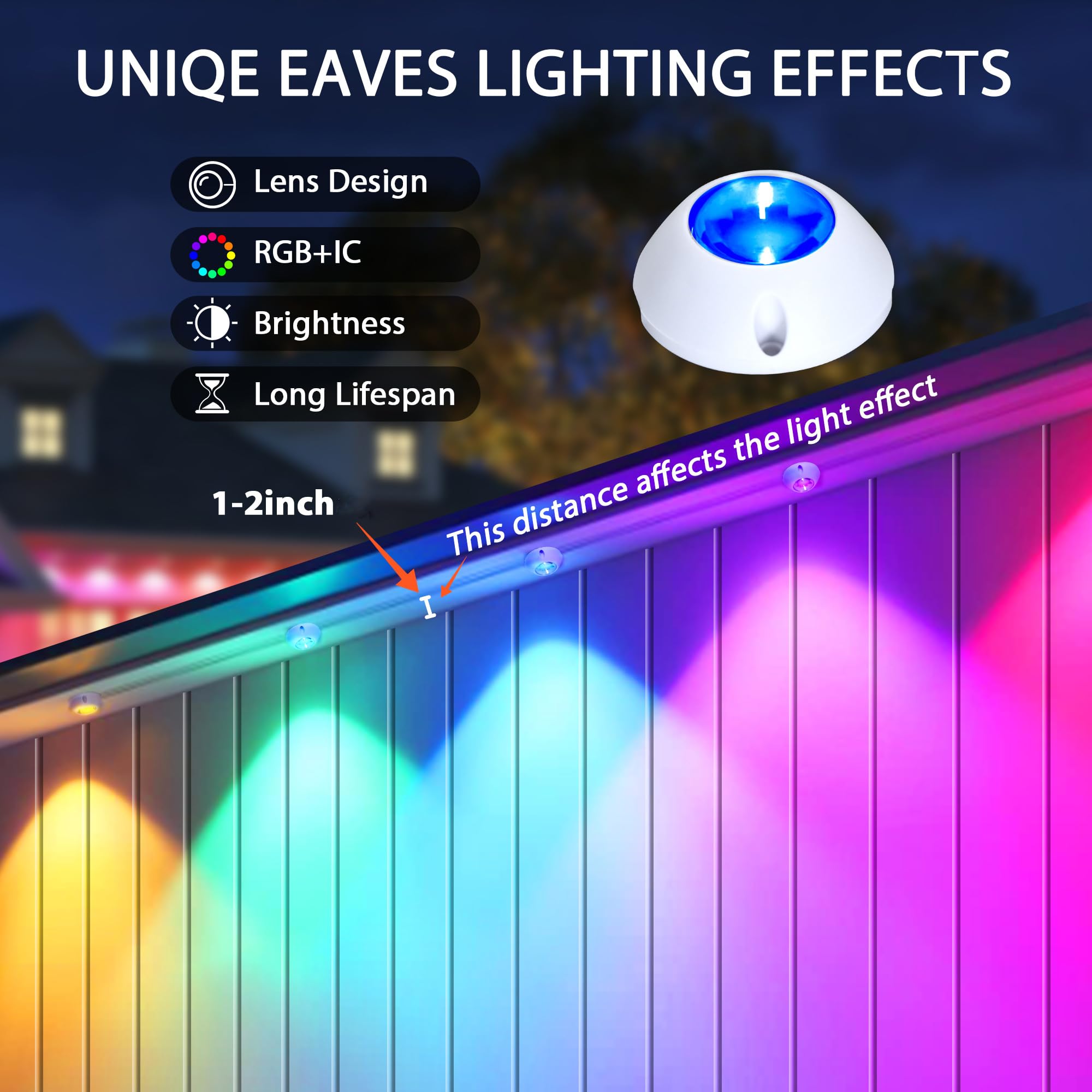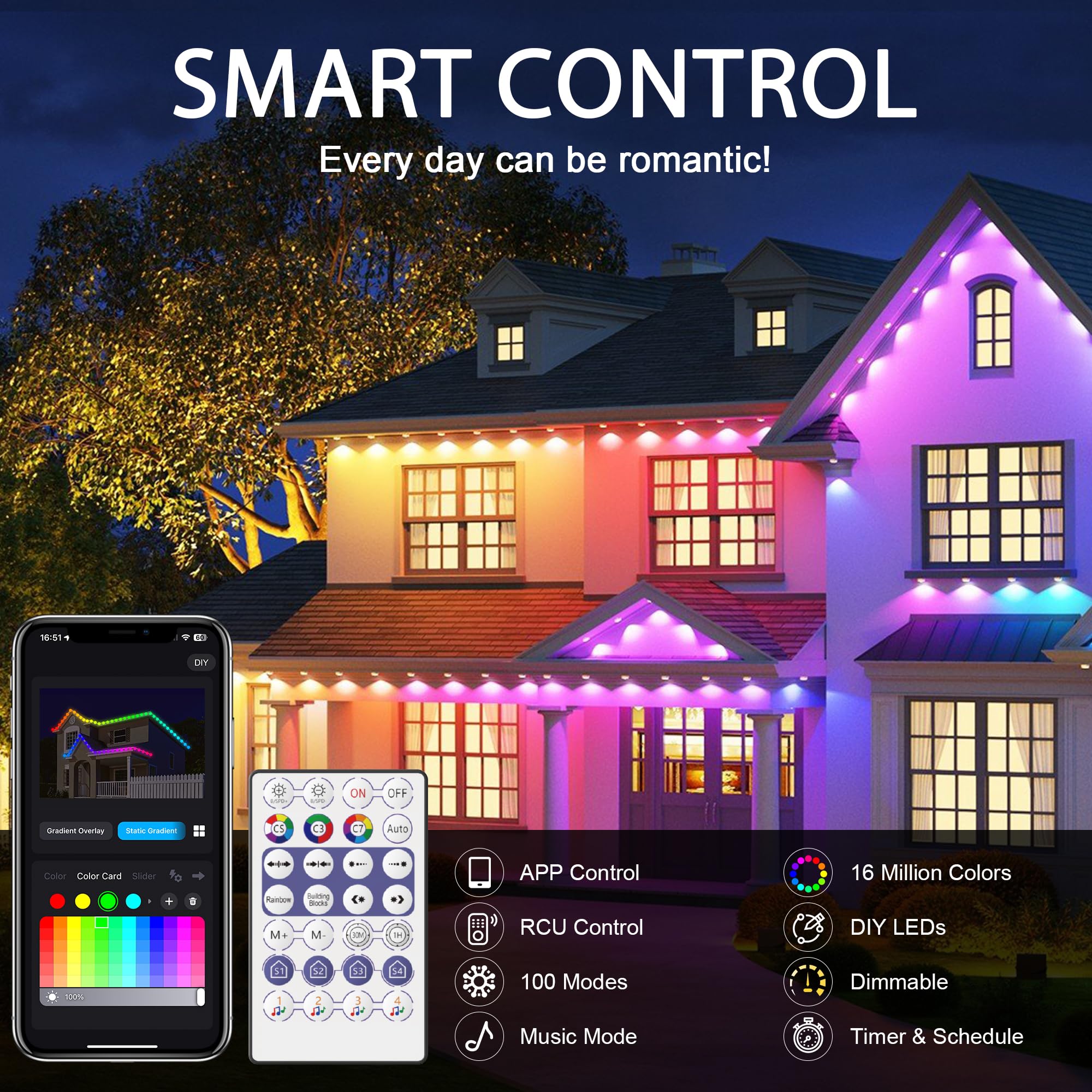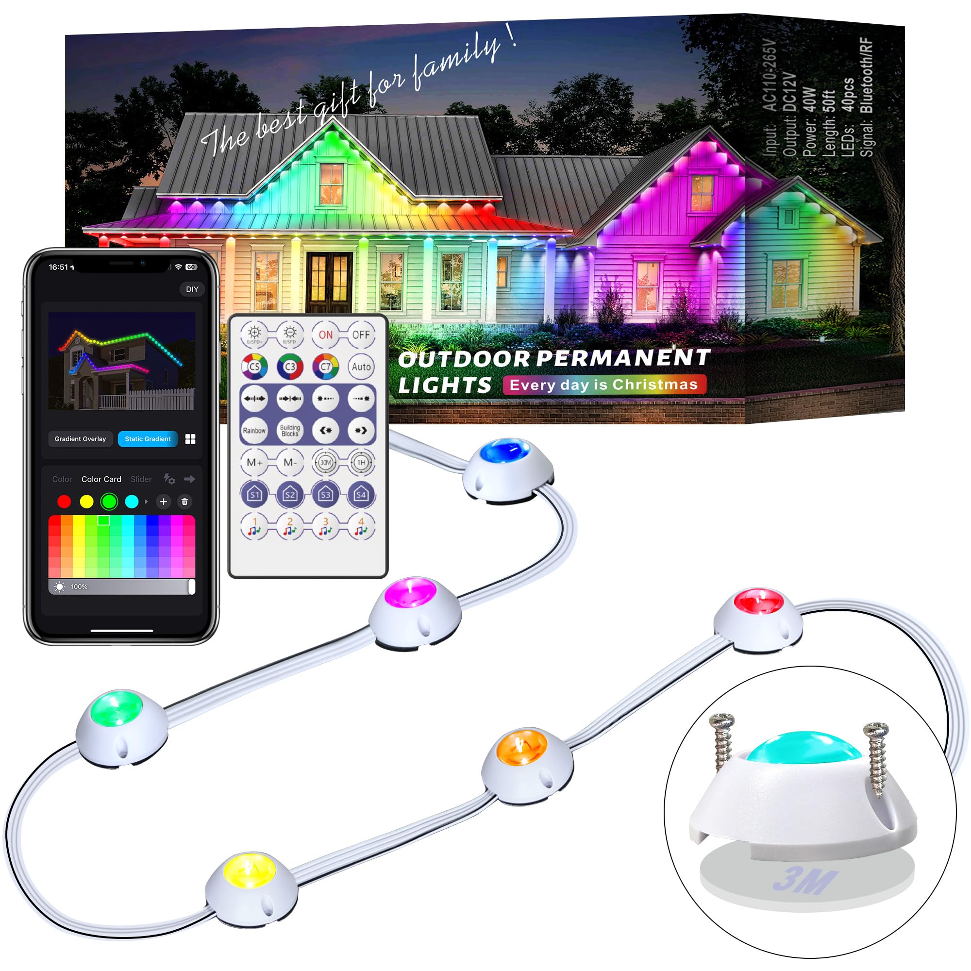 Permanent Outdoor Lights Christmas Halloween 40ft Smart RGB IC Outdoor Eaves Lights IP65 Waterproof Rainbow House Forever Light with DIY Scene Mode Music Sync for Year, Party, Holiday