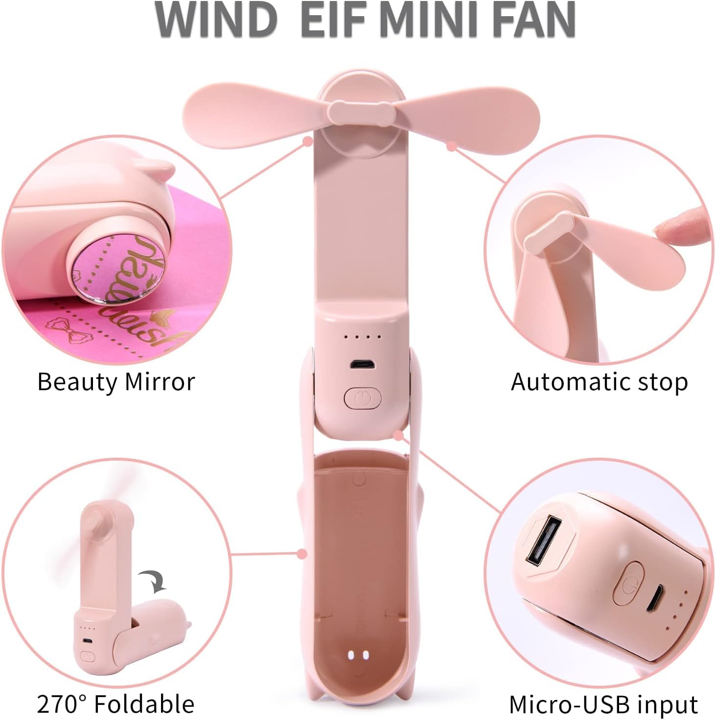 Personal Fan Handheld Mini Fan, 3 In 1 Hand Fan Foldable, Portable Fan Usb Rechargeable Small Pocket Fan Make Up Fan, 2500Mah