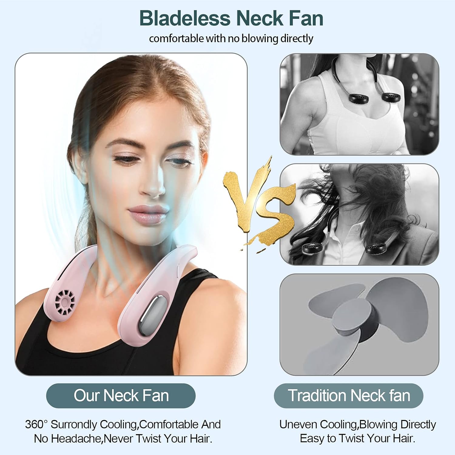 Personal Fan,Portable Neck Fan Rechargeable,HandsFree Bladeless Fan With ThreeSpeed Change,360° Surround Airflow Personal Cooling