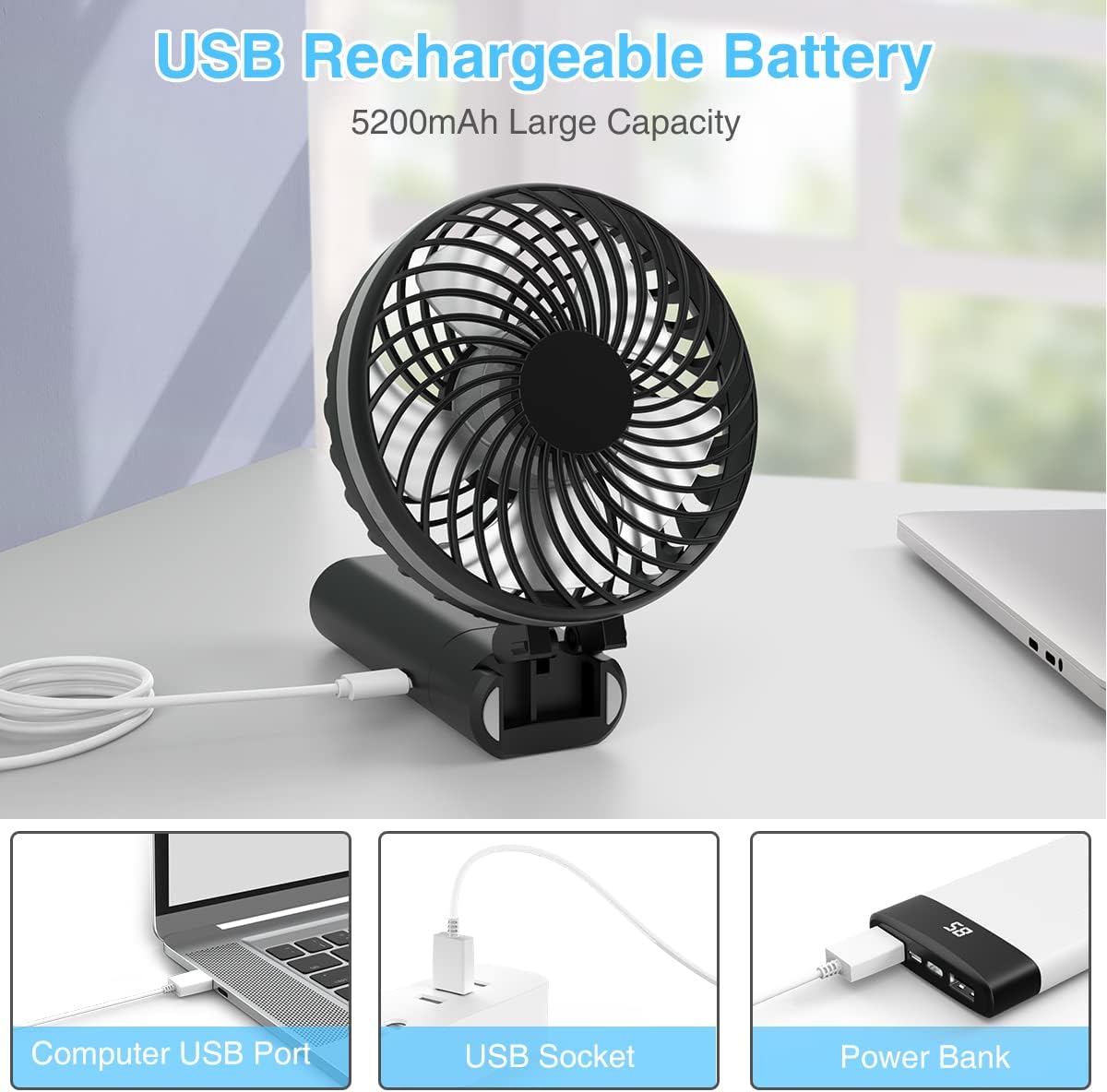 Personal Handheld Fan, Portable Usb Rechargeable Battery Operated Desk Fan With 5200Mah Power Bank Led Screen Function, 5 Speeds