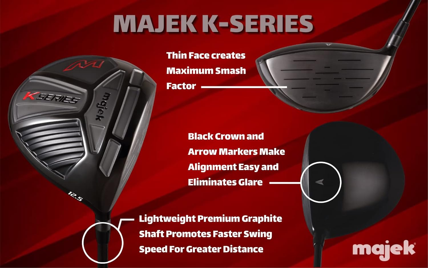 Petite Senior Women's Majek High Launch Golf K Series 460cc 12.5° Driver, Right Handed Premium Ultra Forgiving Senior Ladies Flex Graphite Shaft. (Petite - 4'10'' to 5'3") 55+ Years Old
