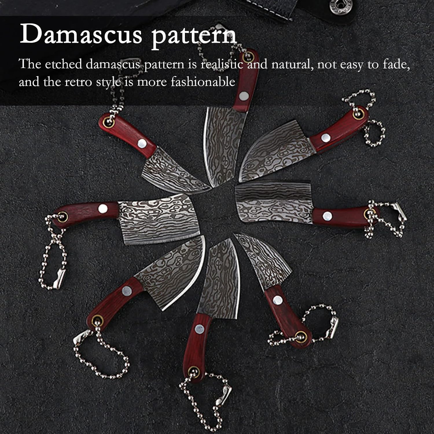 Pocket Knife Mini Knife Set Damascus Chef Knives EDC Knife Set Tiny Knife Cleaver for Package Opener,Box Cutter,5pcs Mini Knives Set with Sheath and Sharpener - Set of 7