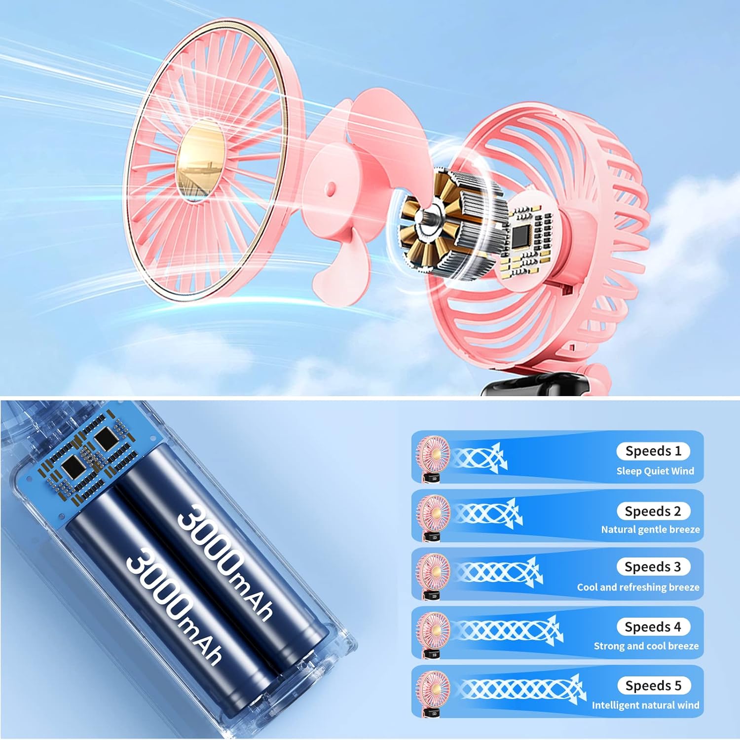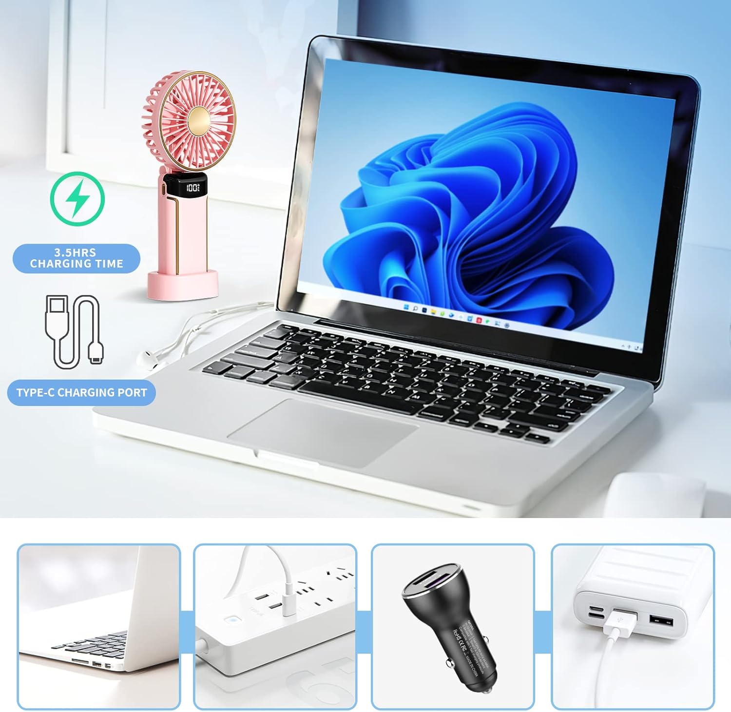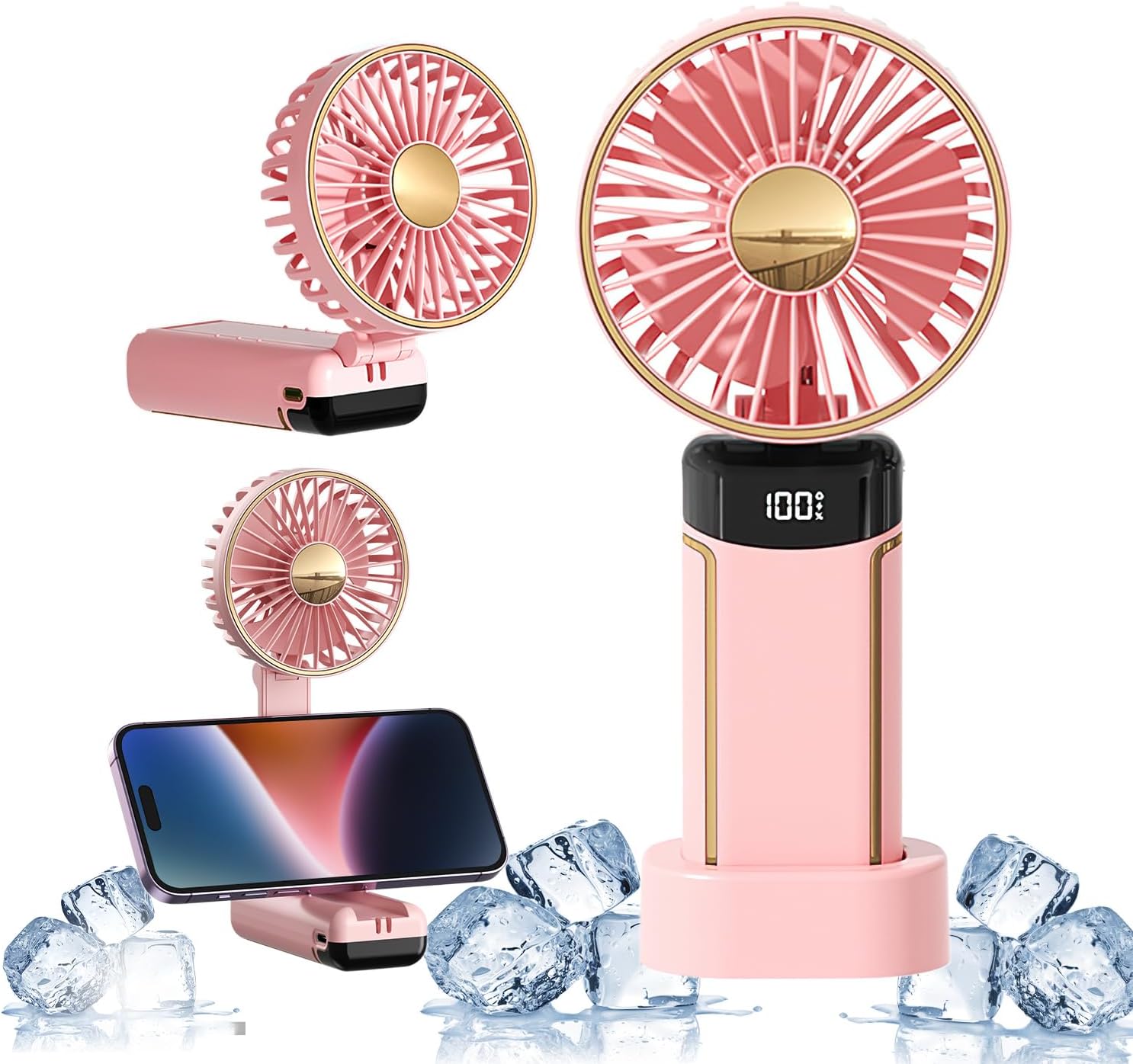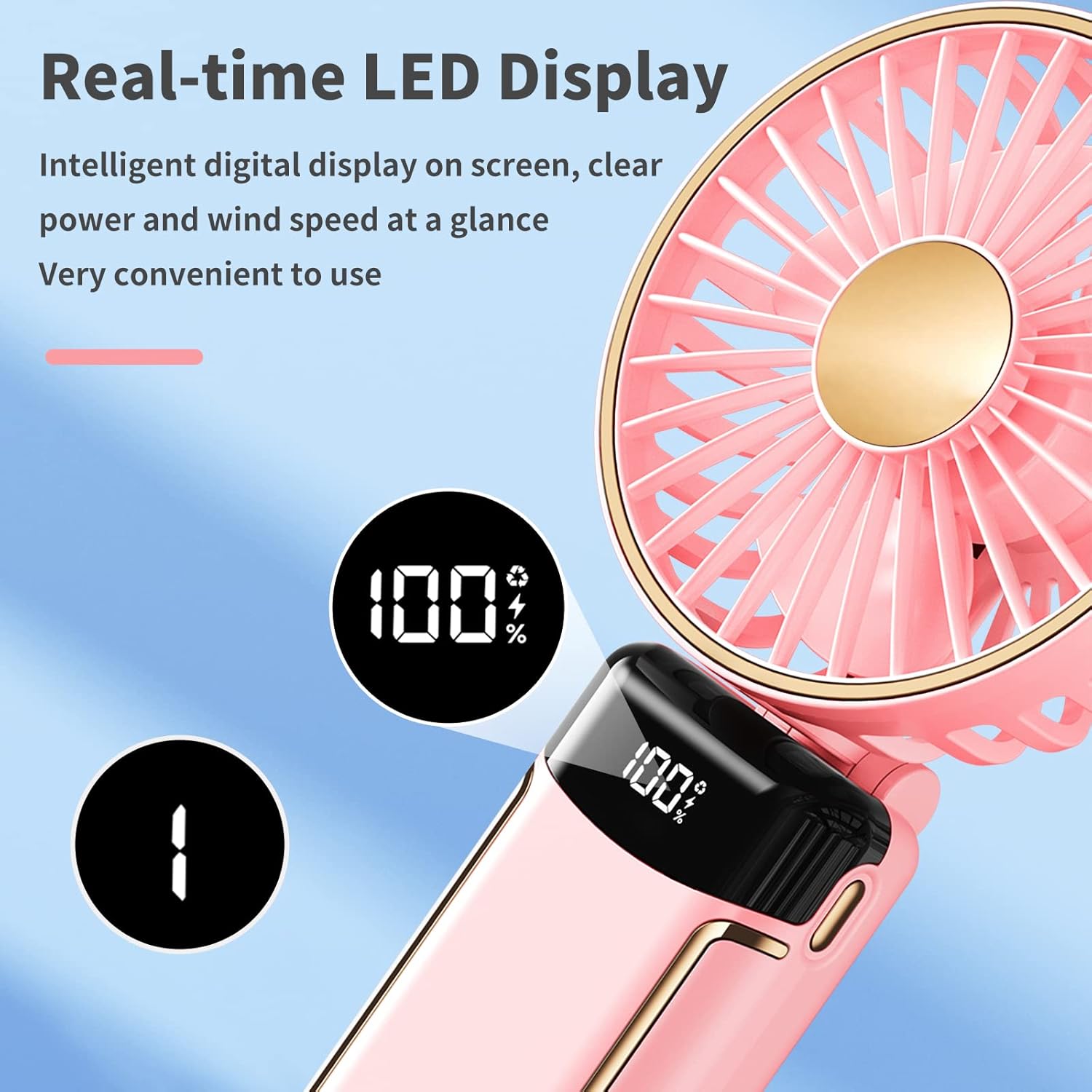 Poratble Handheld Fan Rechargeable Mini Hand Fan 3000Mah Battery Operated Usb Fan With 5 Speeds Led Display Small Personal Fold