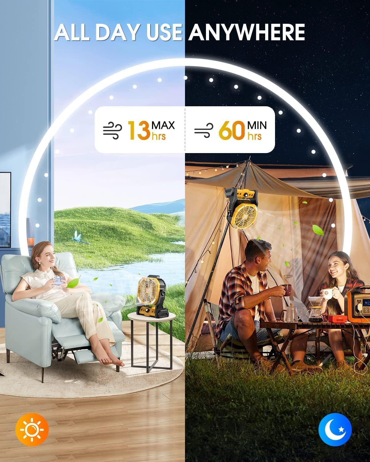 • 【20000mAh LargeCapacity Battery】The largecapacity battery provides you with continuous coolness, allowing you to immerse yourself in the happy time of fishing, camping, and picnics all day long, so that you don't need to wake up in the middle of the night to replace the battery, even it Can power your mobile phone, laptop, tablet.