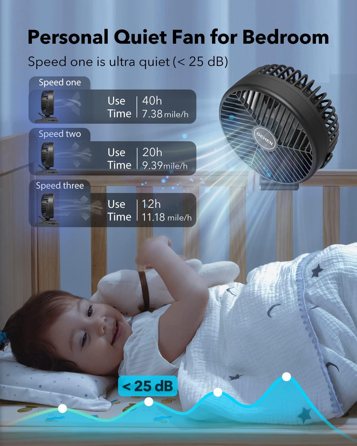 Portable Clip On Fan, Cordless Small Fan, Rechargeable Personal Fan, 10000Mah Battery Operated Desk Fan, Small Table Fan