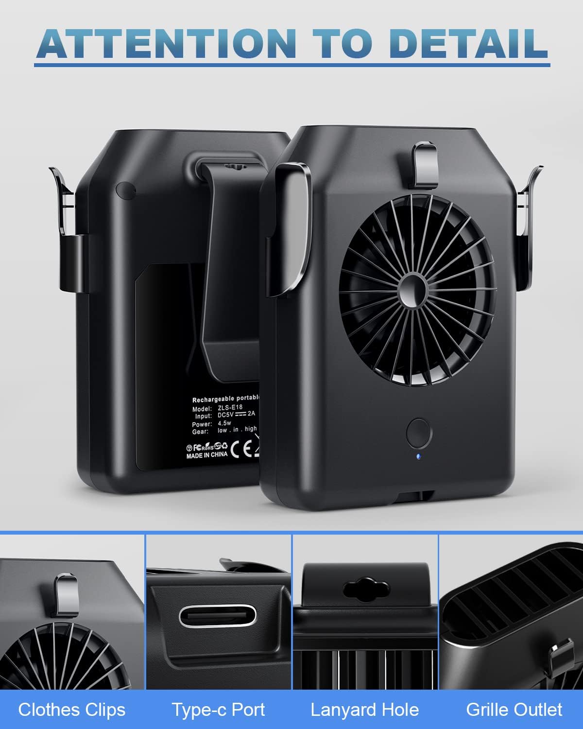 • Powerful and Quiet: Wearable fan with low, medium, and high 3 speeds options, the highperformance motor generates super strong wind at a maximum speed of 5100 RPM while maintaining a low noise level ≤57dB. The spacious air outlet is equipped with a builtin safer turbine, making the mini portable fan more efficient and safer to use than visible fan blades.