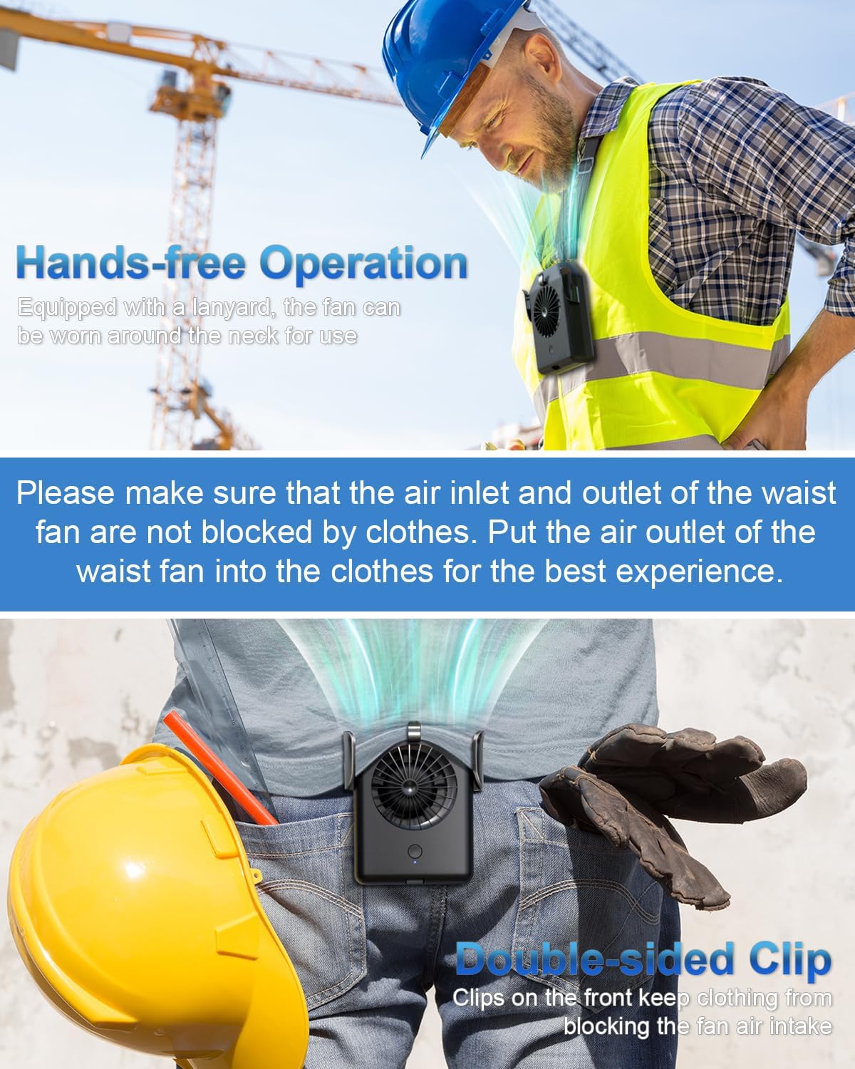 • Long Working Time: This portable belt fan comes equipped with a 10,000mAh highcapacity polymer battery, providing long enough working time and keeping you cool throughout the day at work or outdoors. This hanging neck fan supports 2A fast charging and can be fully charged in about 34 hours using various USBenabled devices like wall chargers, power banks, and laptops.