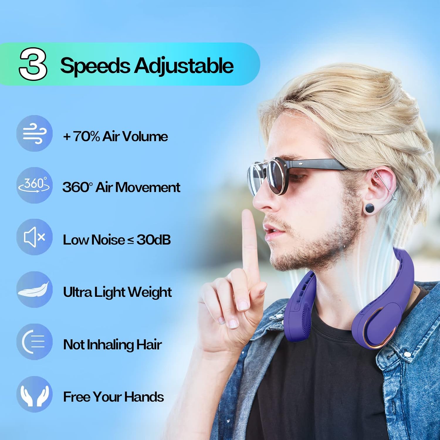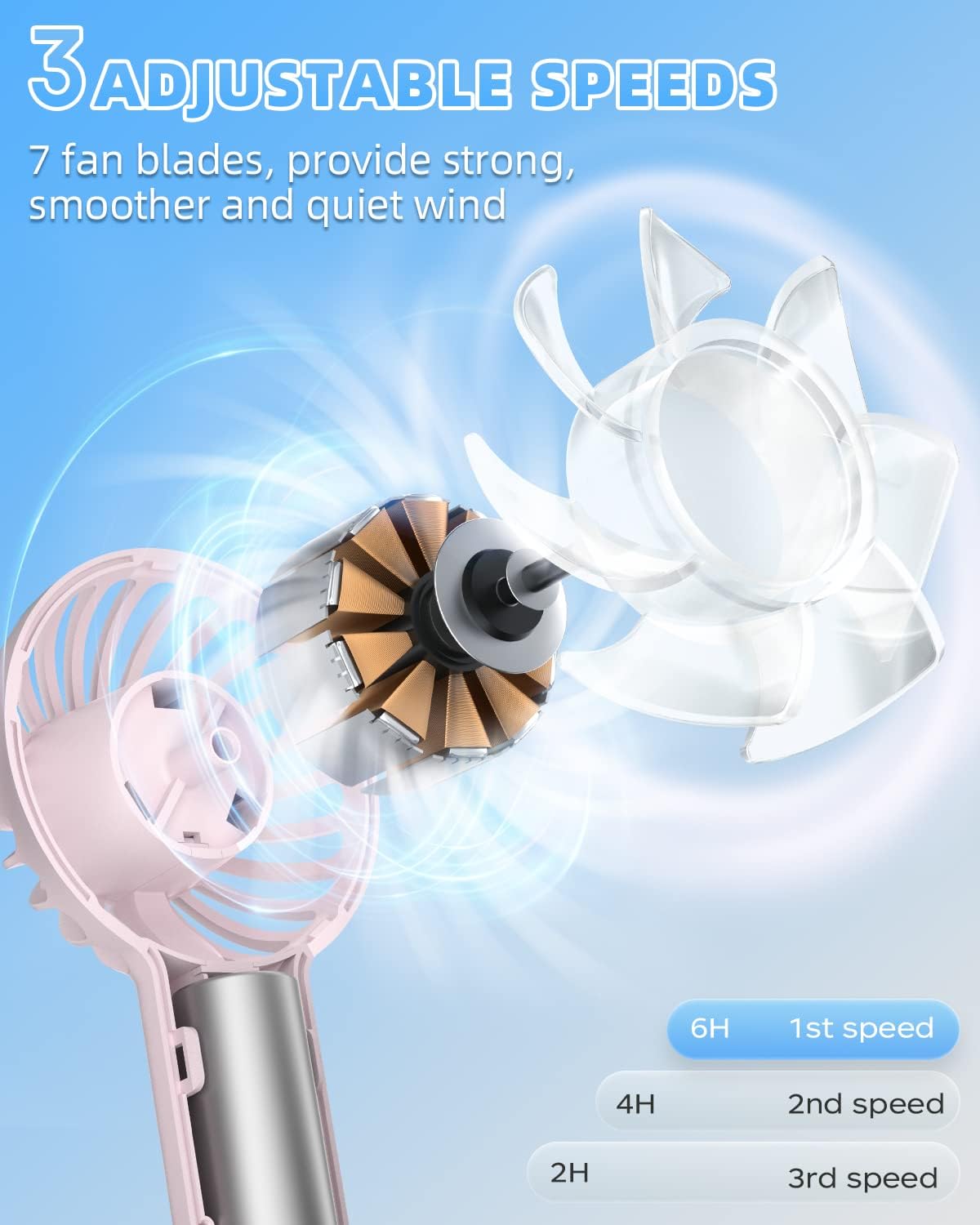 Portable Fan, Neck Fan Mini Handheld Fan, 3 Speeds, Usb Rechargeable, Long Use Time, Battery Operate Small Personal Fan For Women