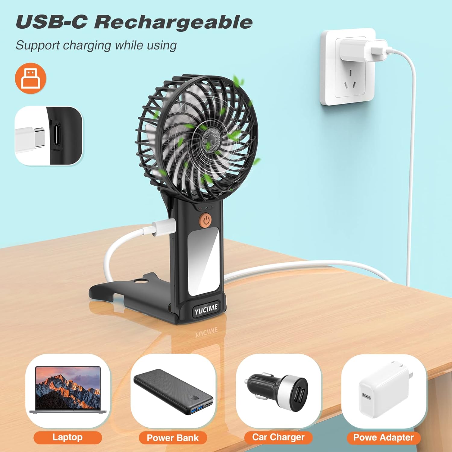 Portable Handheld Fan Desk Fan, Powerful Personal Fan 4 Adjustable Speed Usb Recharging Battery Operated Mini Fan With Makeup