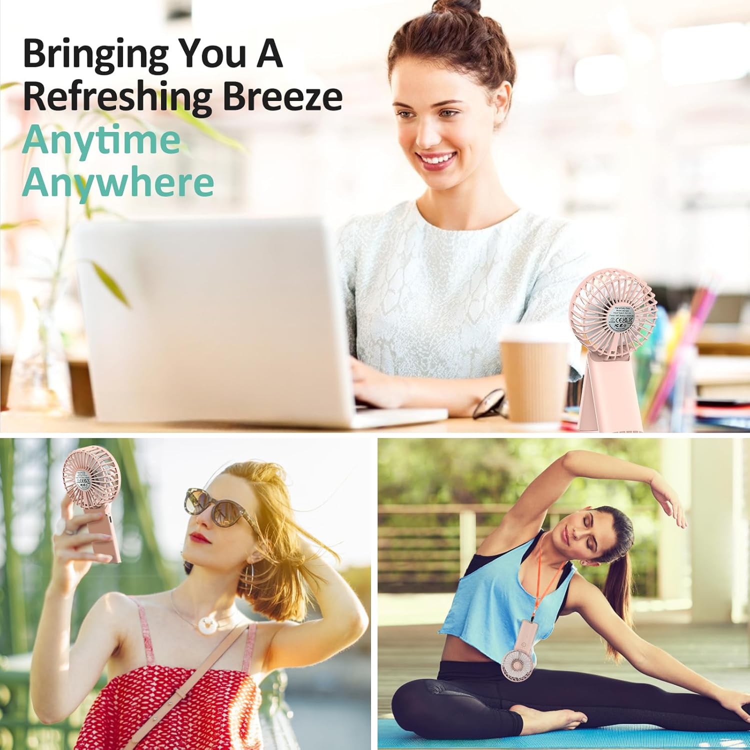 Portable Handheld Fan Pink, Rechargeable Small Personal Fan, 15H Max Cooling Time, 4 Speeds Battery Operated Fan, Women, Men'S