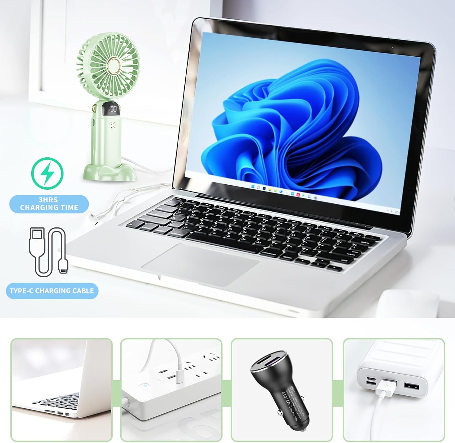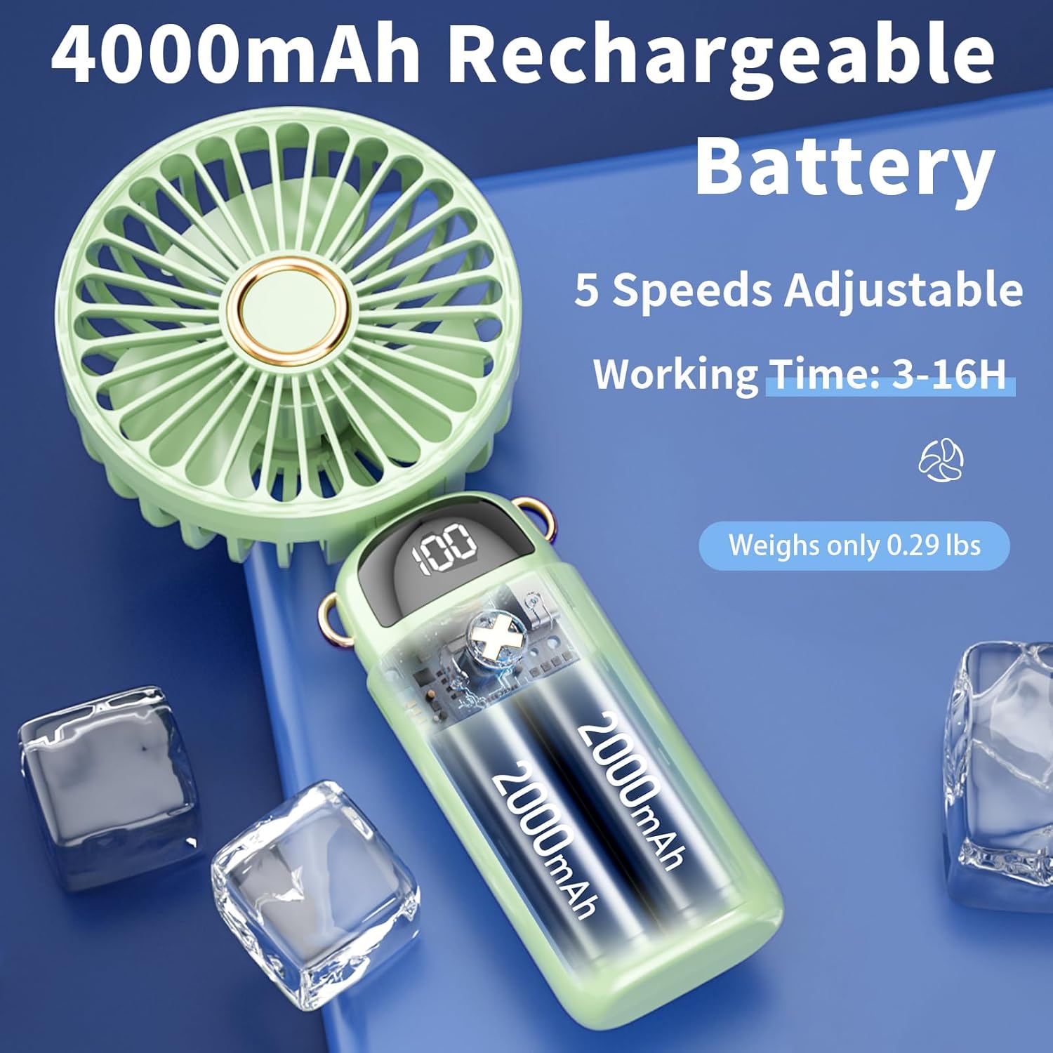 Portable Handheld Fan Rechargeable, Mini Hand Held Personal Fan 4000Mah Battery Operated Desk Fan With Base, Led Display,5 Speeds