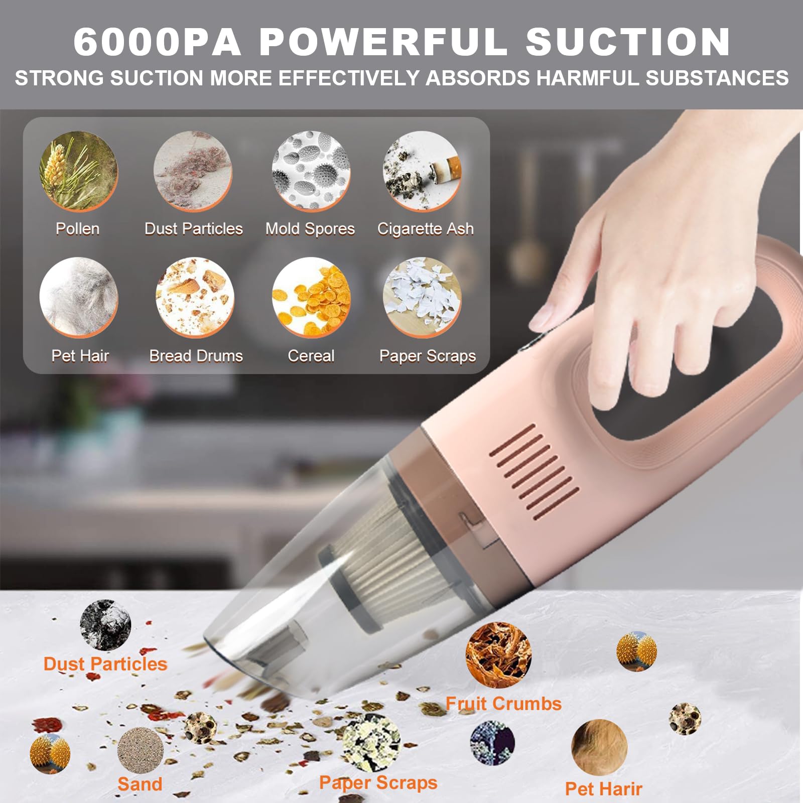Portable Handheld Vacuum Cleaner Cordless, Cleaner For Dirt Home Pet Hair, Car Interior Dust, Power Suction Lightweight Stylish Hand Vacuum Pink