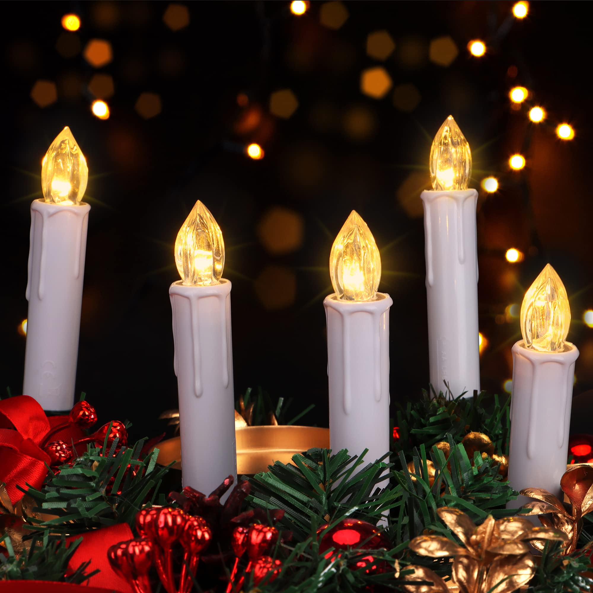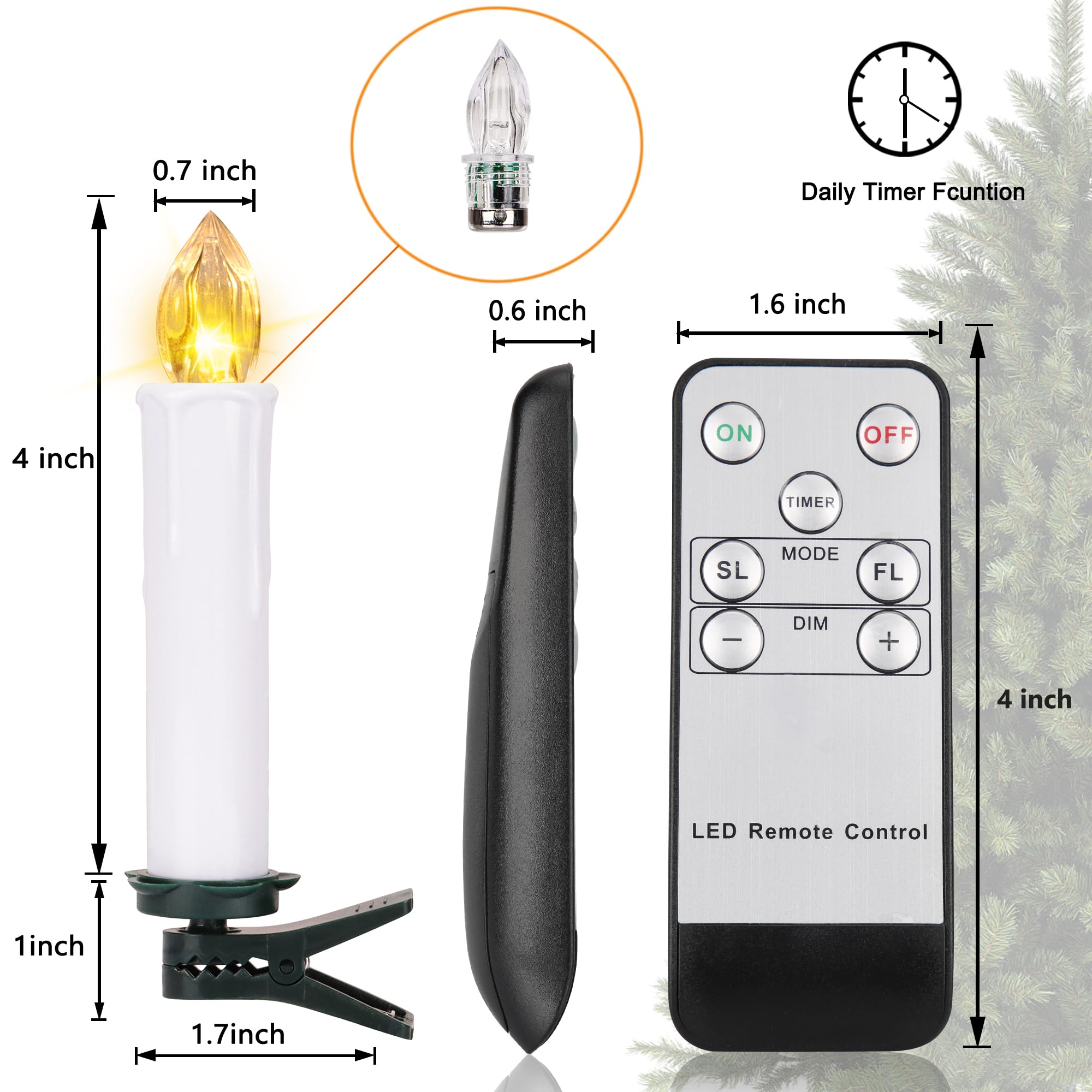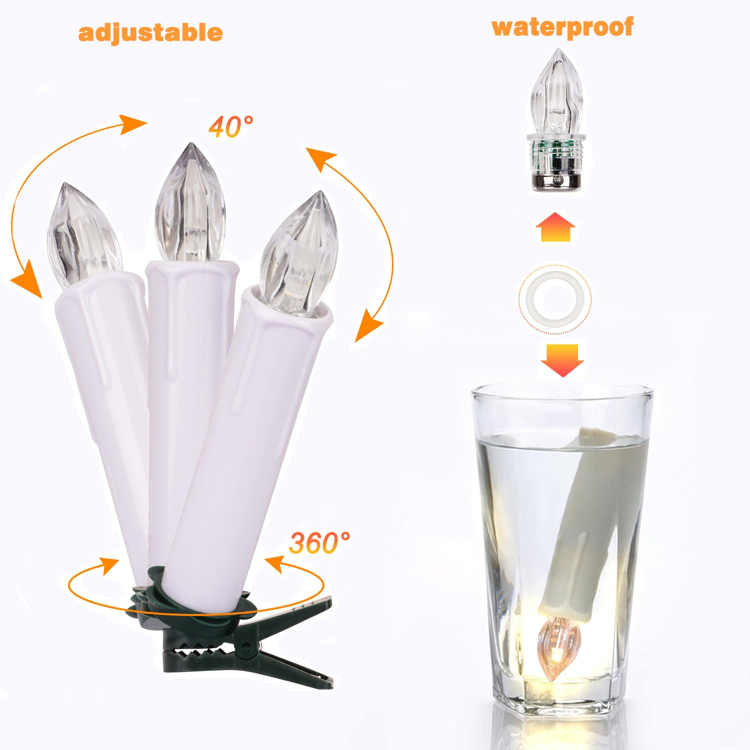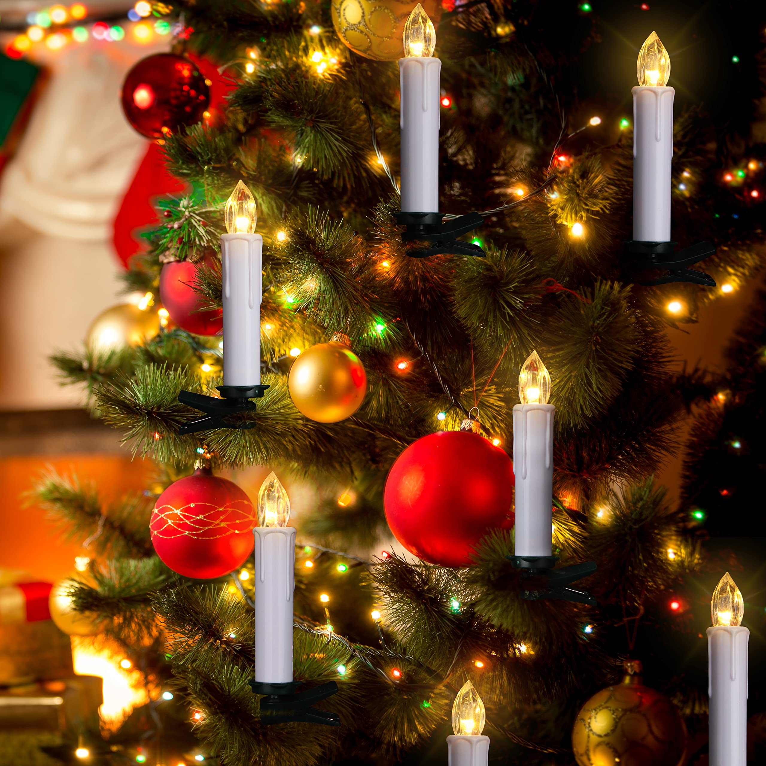 POWER 30PCS Flameless LED Taper Candles Battery Operated Christmas Tree Candle Lights With Remote Timer, Flickering Flame Mini Clip on Candles For Christmas Trees Garden Parties Home Decor (White)