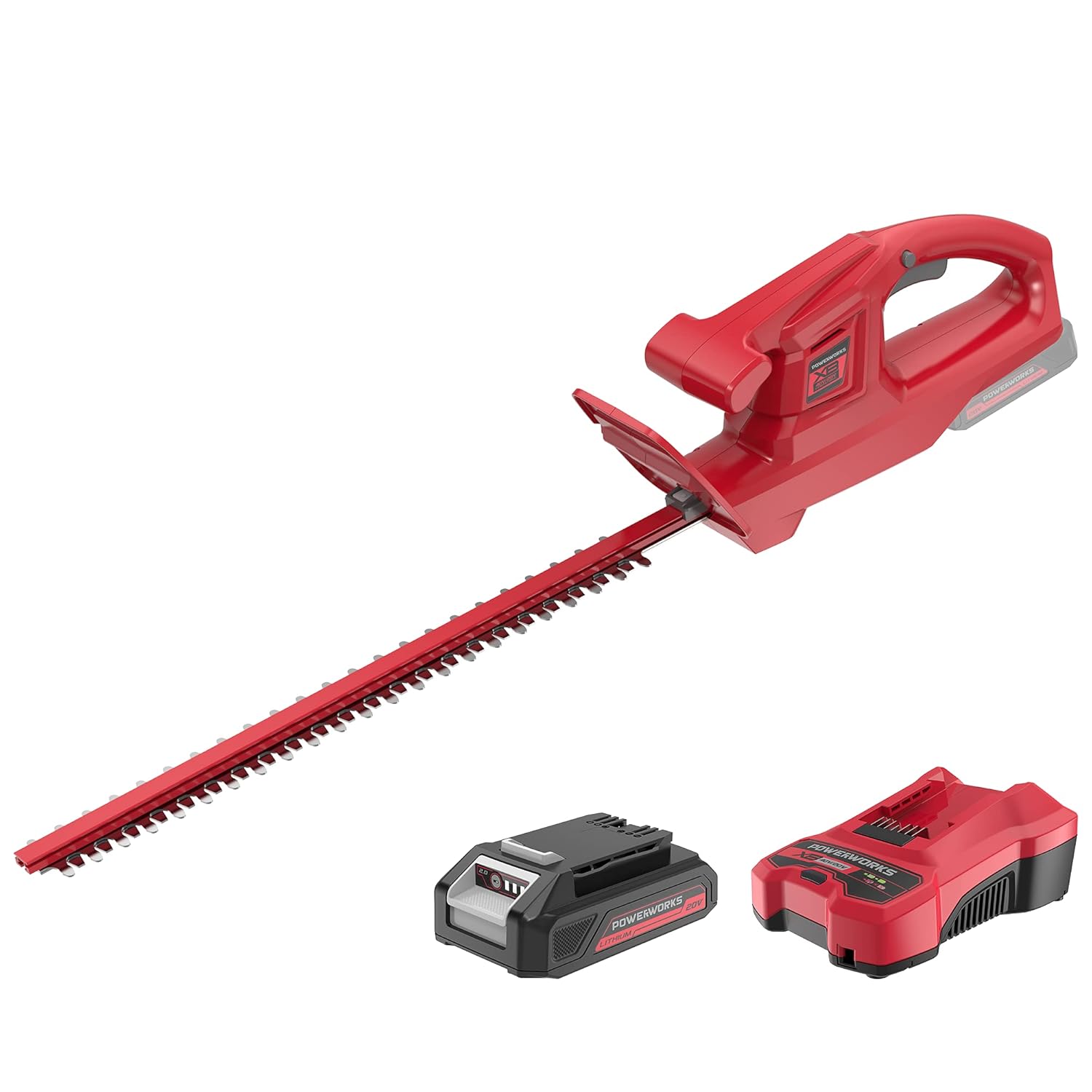 POWERWORKS 20V 20 Inch Cordless Hedge Trimmer Electric Grass Trimmer, Dual Action Blade & 5/8" Cutting Capacity, XB 2Ah Battery and Charger Included ,for Bush Lawn and Garden