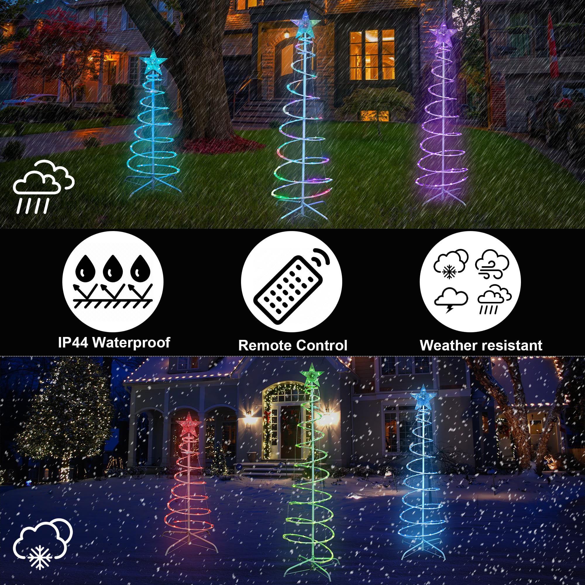 Presence 3 PCS Spiral Christmas Tree with Lights for Outside, Collapsible Multicolor LED Lighted Mode Christmas Tree for Outdoor
