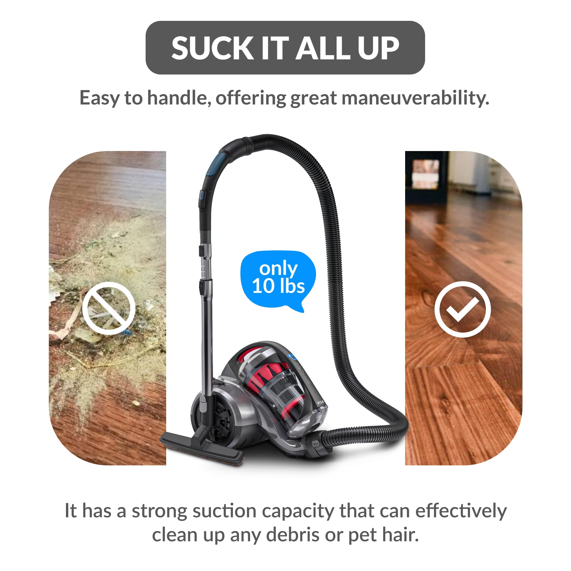 Prolux Rs4 Bagless Canister Vacuum, Lightweight With Dual Hepa Filtration, 25 Foot Retractable Cord, Telescopic Wand, Versatile For Wood Floor, Carpet, Home, Office, Apartment, Rv, Dorm Room