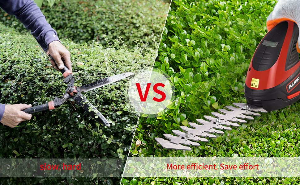 PULITUO 12V Cordless Handheld Grass Shear and Shrub Trimmer, 2-in-1 Hedge Trimmer That Comes with 2 PCS 2.0Ah Li-Ion Batteries and a Fast Charger Included.