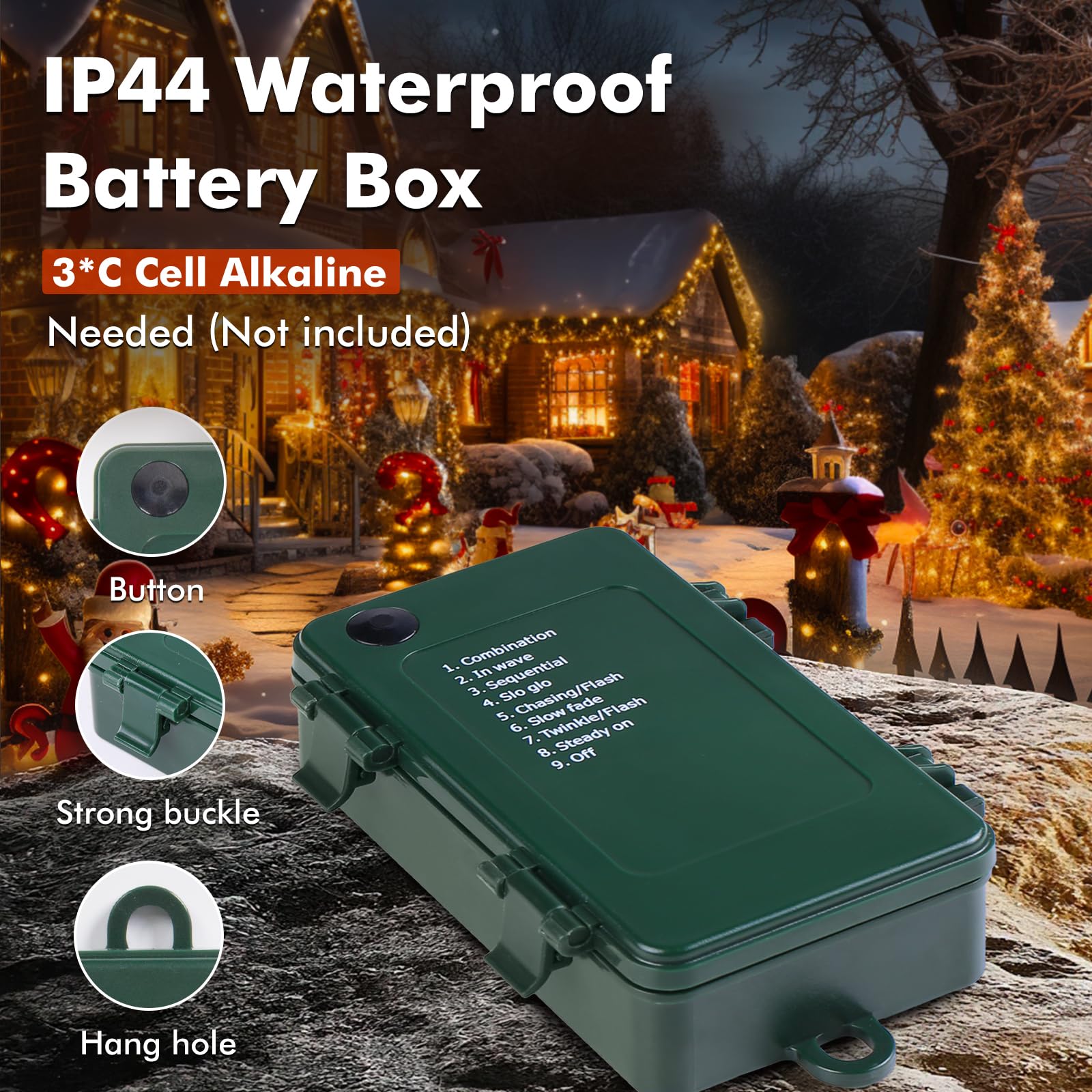 Quntis C Battery Operated Christmas Lights - 82FT 1000LED Ultra Bright Cluster Christmas Lights Outdoor Waterproof 8 Modes Christmas Tree String Lights with Timer for Wedding Party, Warm White