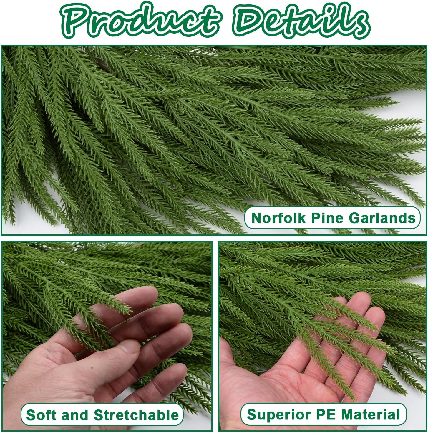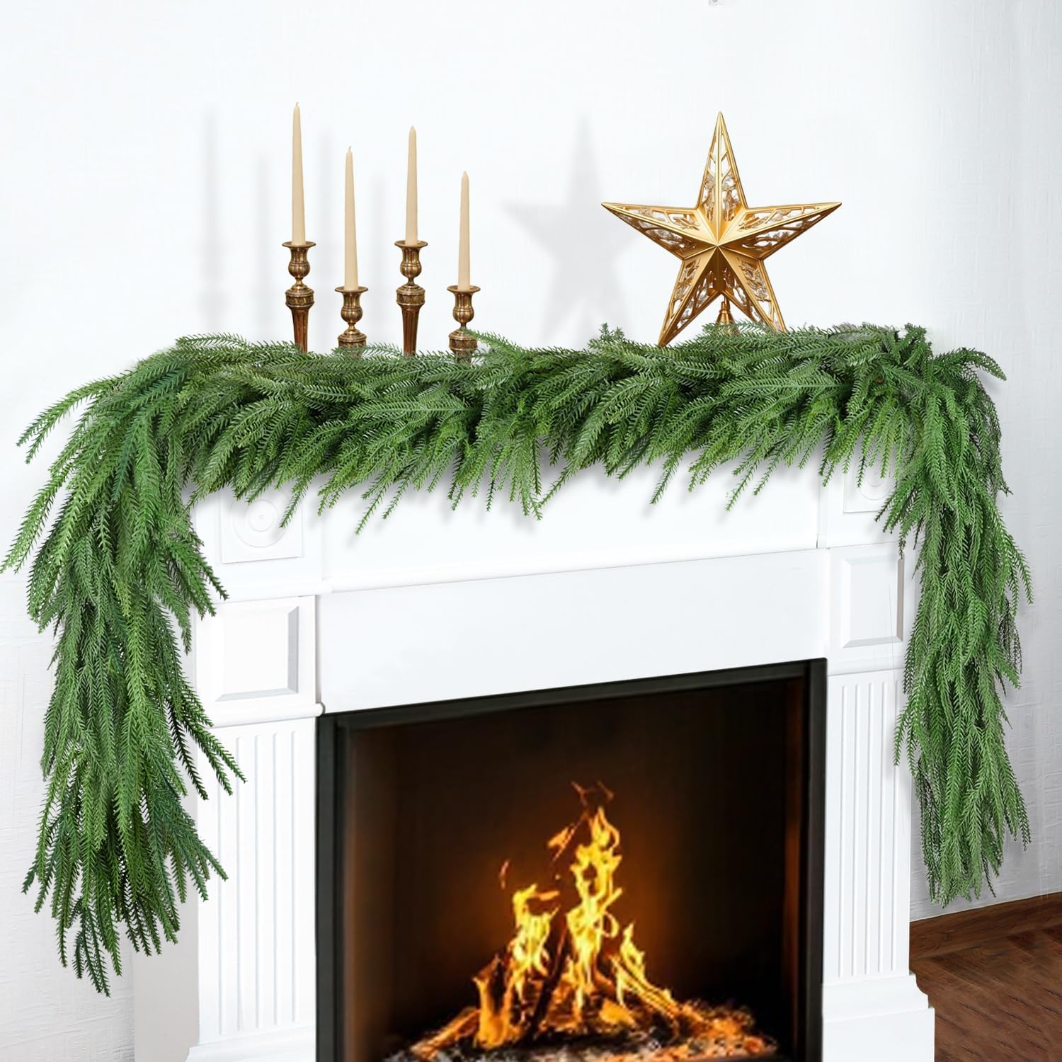 Realistic Norfolk Pine Garland Christmas Garlands, SAREAL 9ft Artificial Faux Greenery Garland for Christmas Festive Holiday Decor