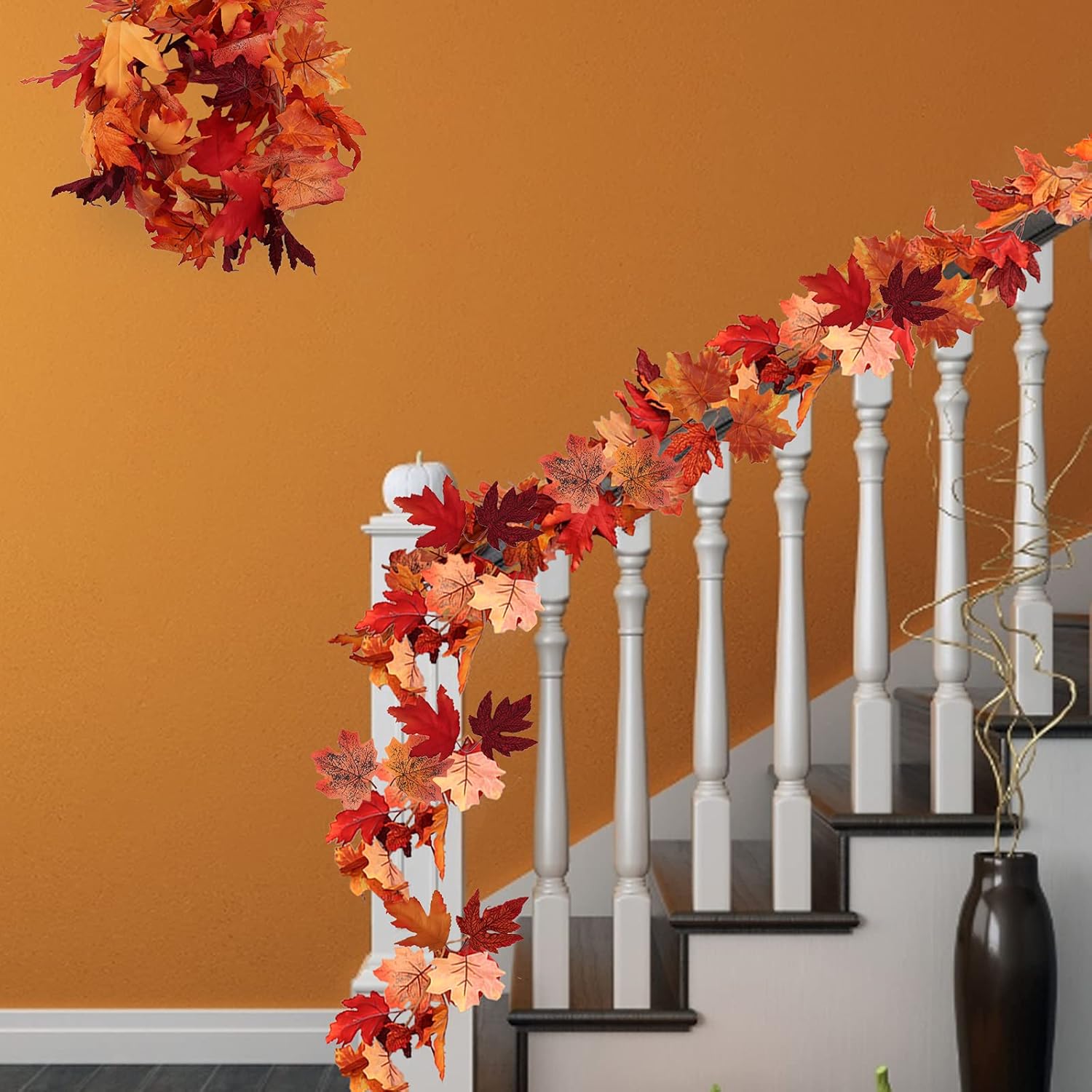 • Realistic Fall Leaves Garland: Lifelike,similar colors to real maple leaves in autumn,And you don't need to worry about exposing them to wind, rain and sunshine