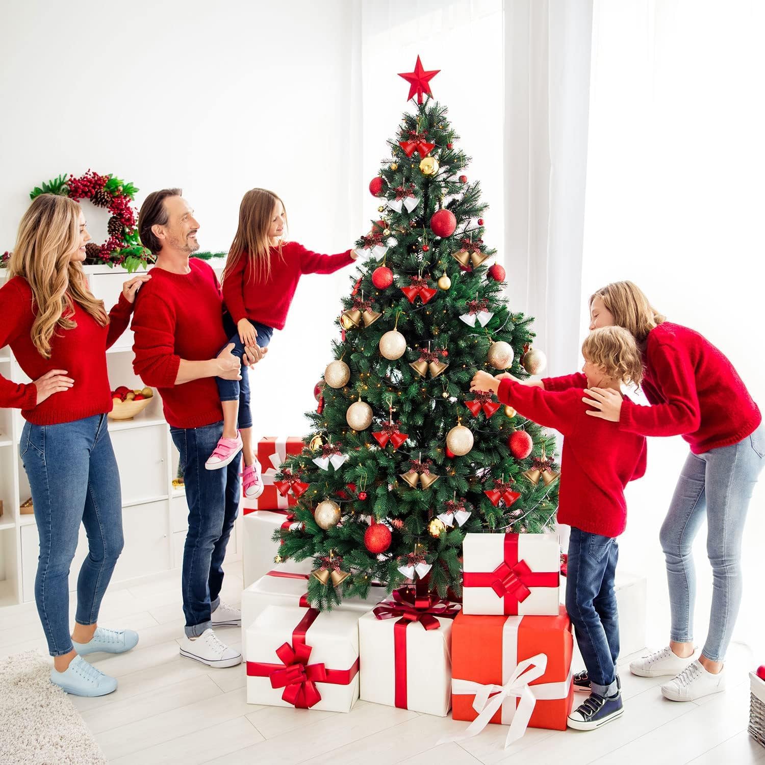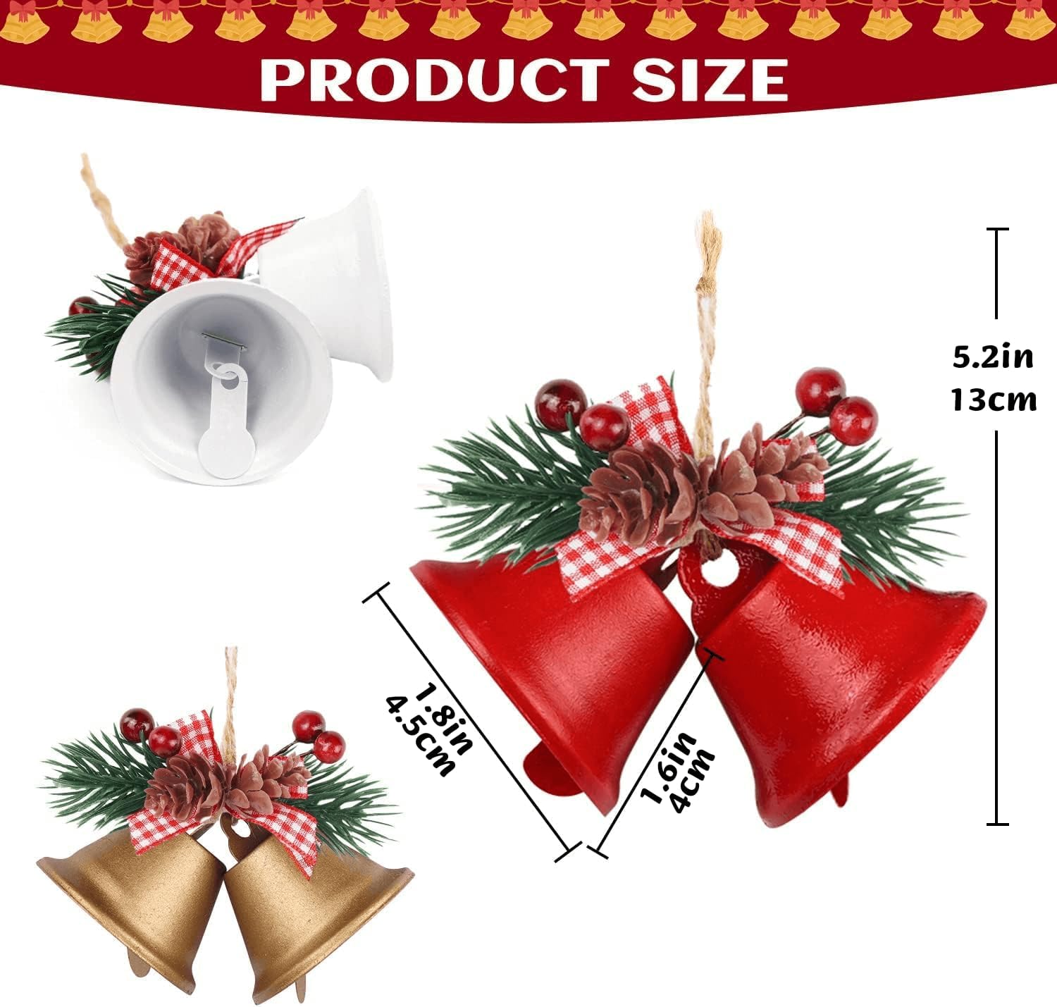 Red Christmas Bells Ornament, Tree Hanging Ornament Metal Jingle Bells for Christmas Decoration Holiday Party Supplies (6Pcs)
