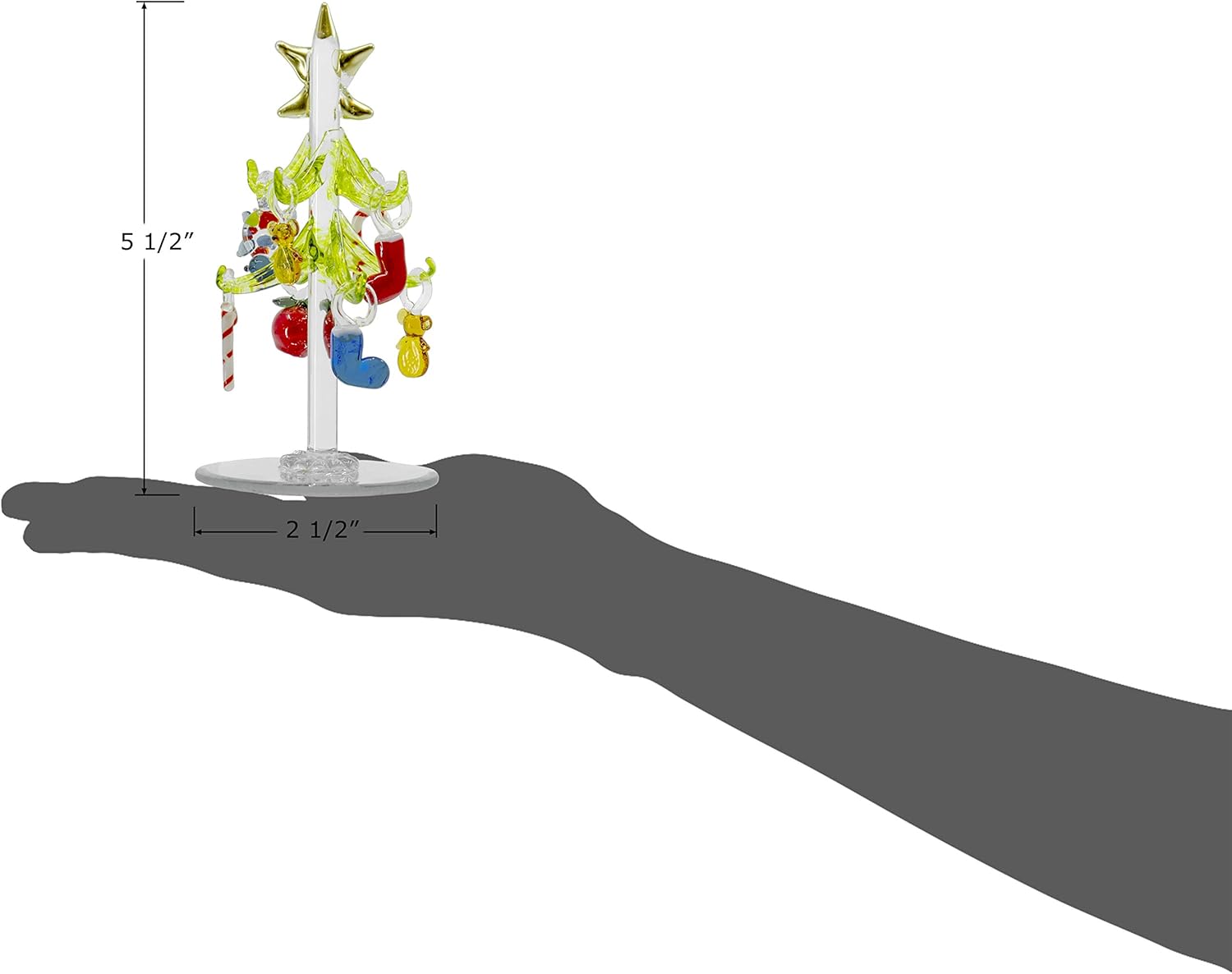 Red Co. 5.5" Glass Christmas Tree Tabletop Display Decoration with Assorted Glass Ornaments, Holiday Season Decor, Set of 2