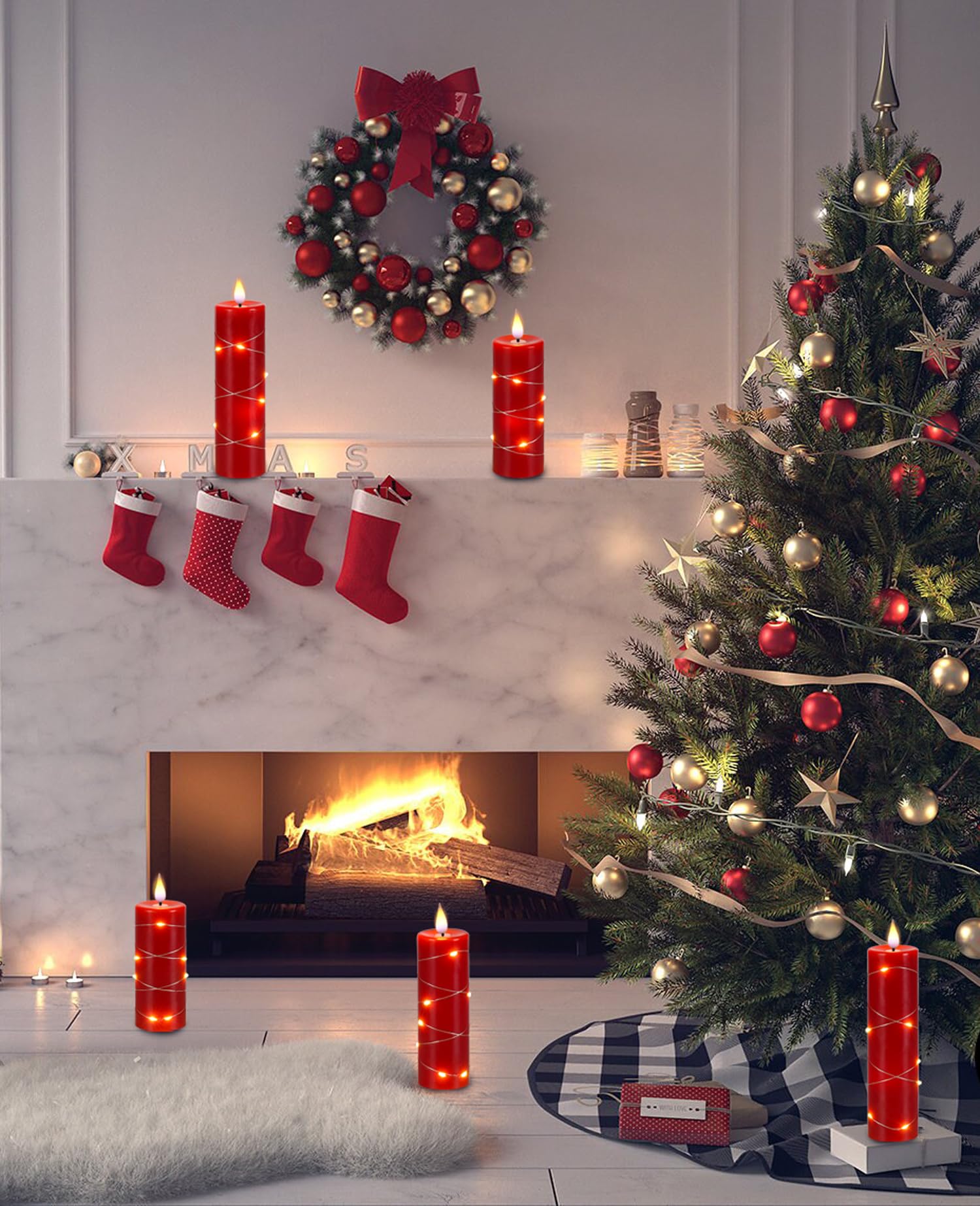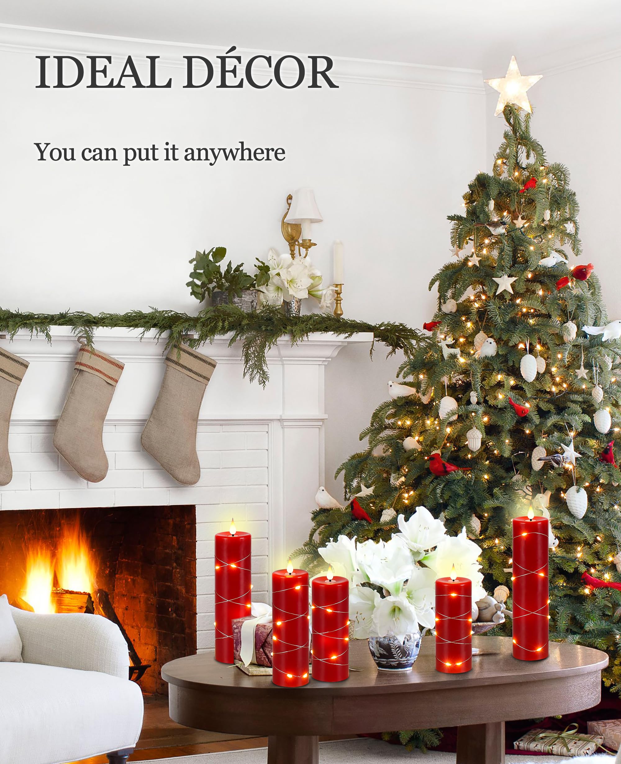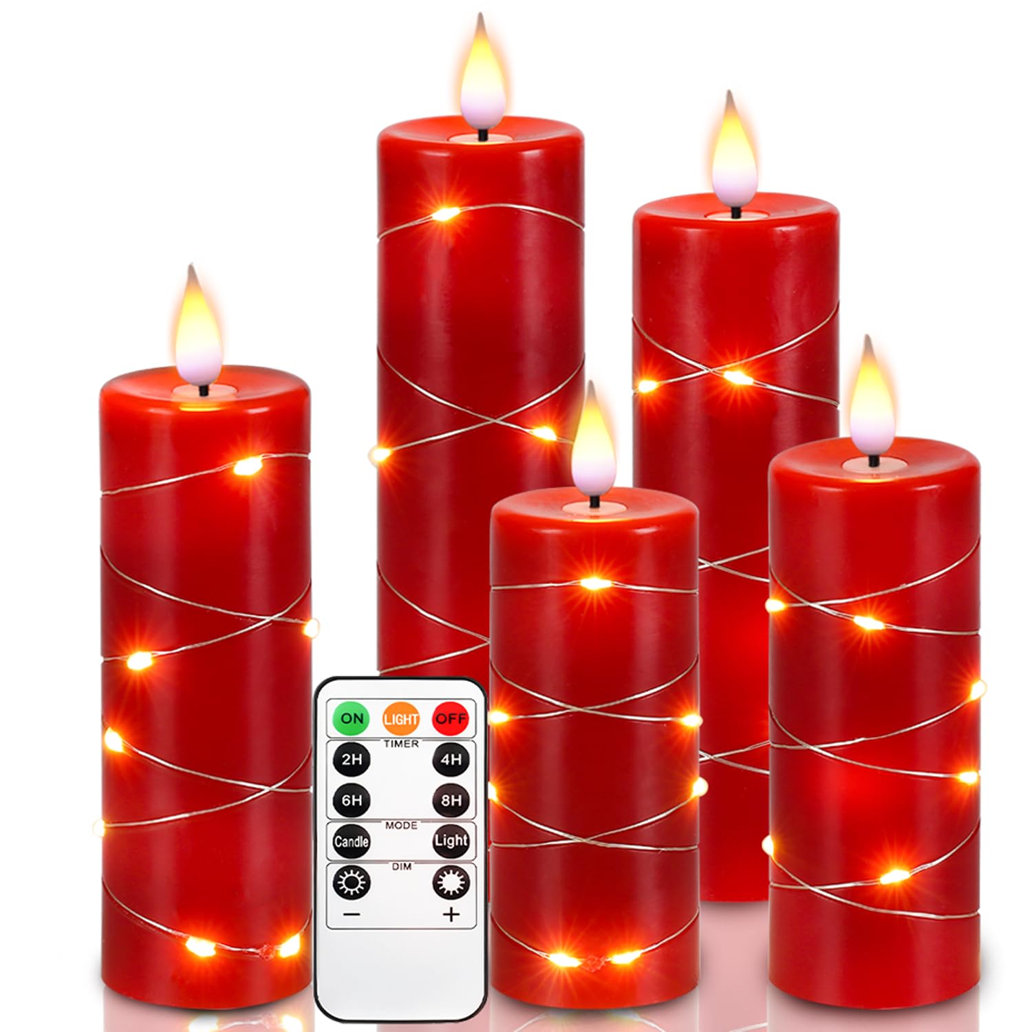 Red Flameless Candle Fairy String Lights, Premium LED Flickering Flame Simulation, LED Candle with Remote & Timed, 5 Cell Battery Powered, Christmas Candle